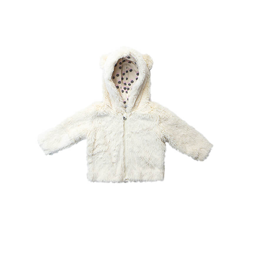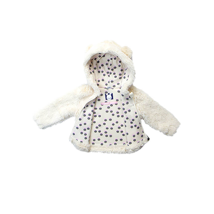Шубка из искусственного меха с капюшоном с веселыми ушками.
