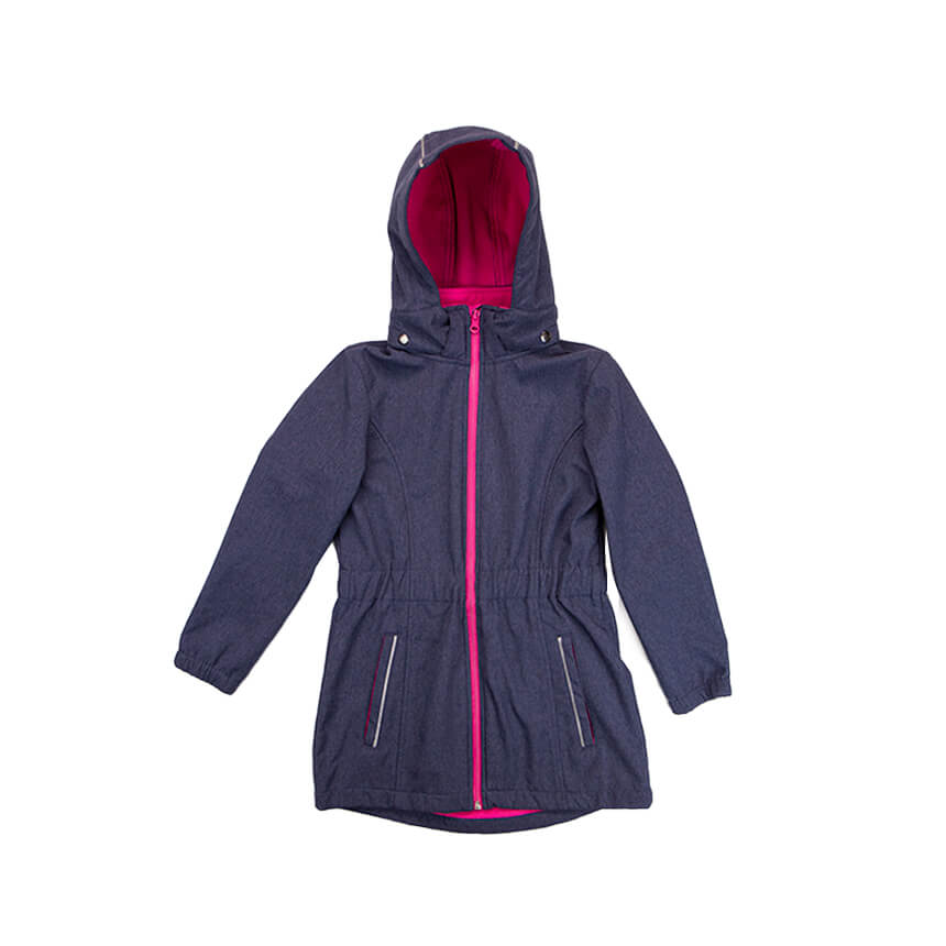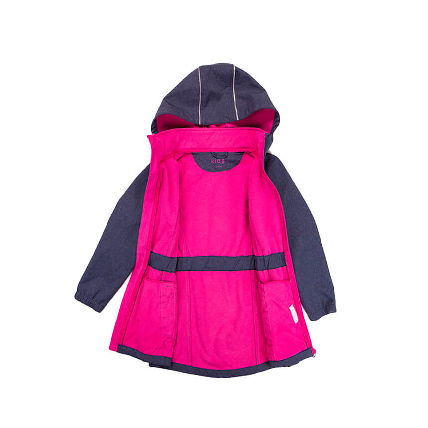 Куртка удлиненная с капюшоном серого цвета с розовой мягкой подкладкой.