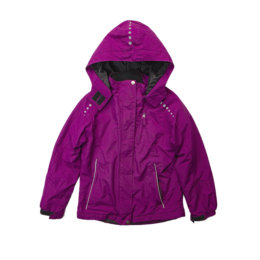 Куртка демисезонная с капюшоном фиолетового цвета.