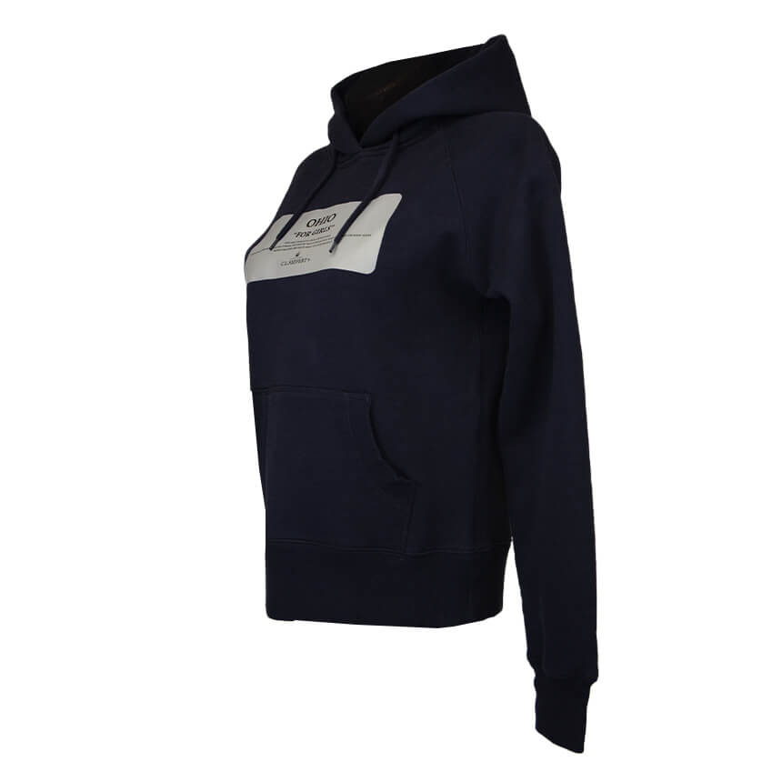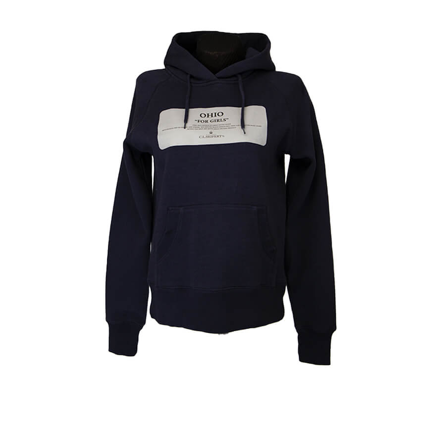 Байка темно-синего цвета с серой вставкой с надписями. Один большой карман-кенгуру, куда удобно прятать руки.