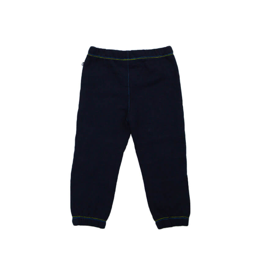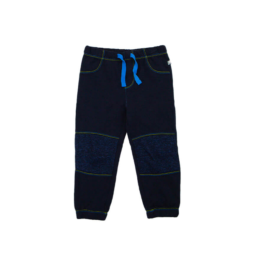 Штаны спортивные темно-синего цвета с голубым шнурком.