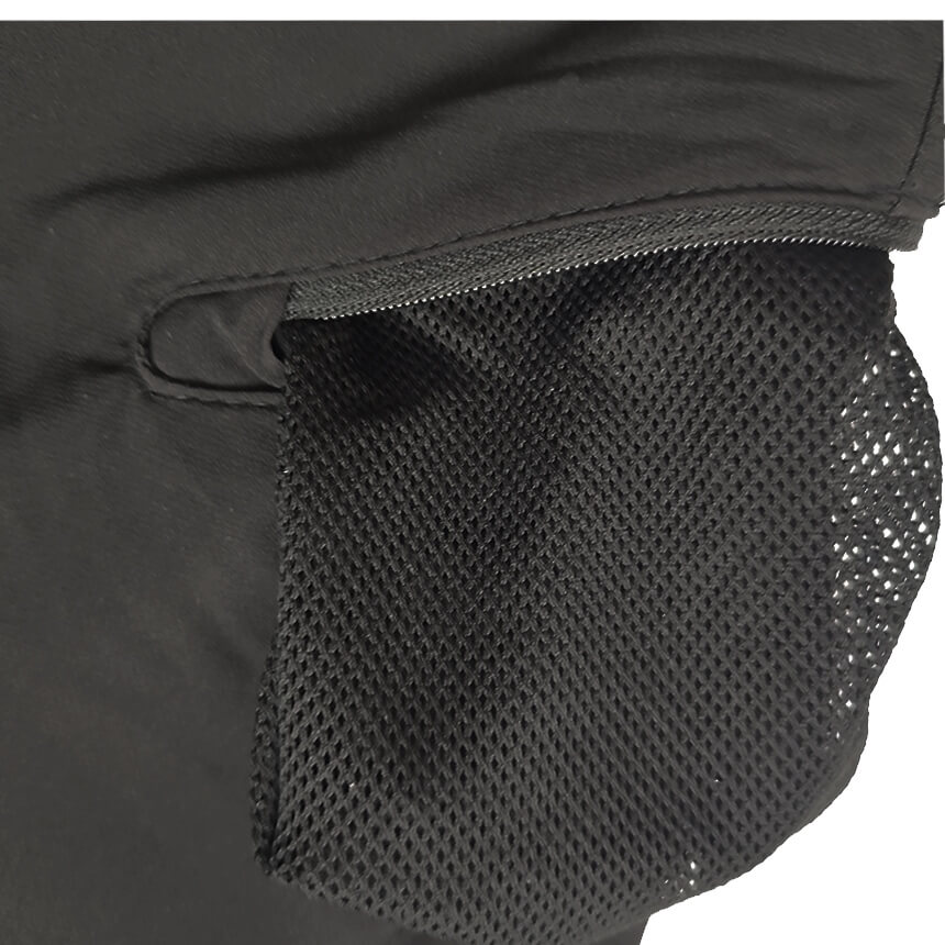 Защипы на коленях спереди и сзади, подкладка-мешковина в карманах дышащая.