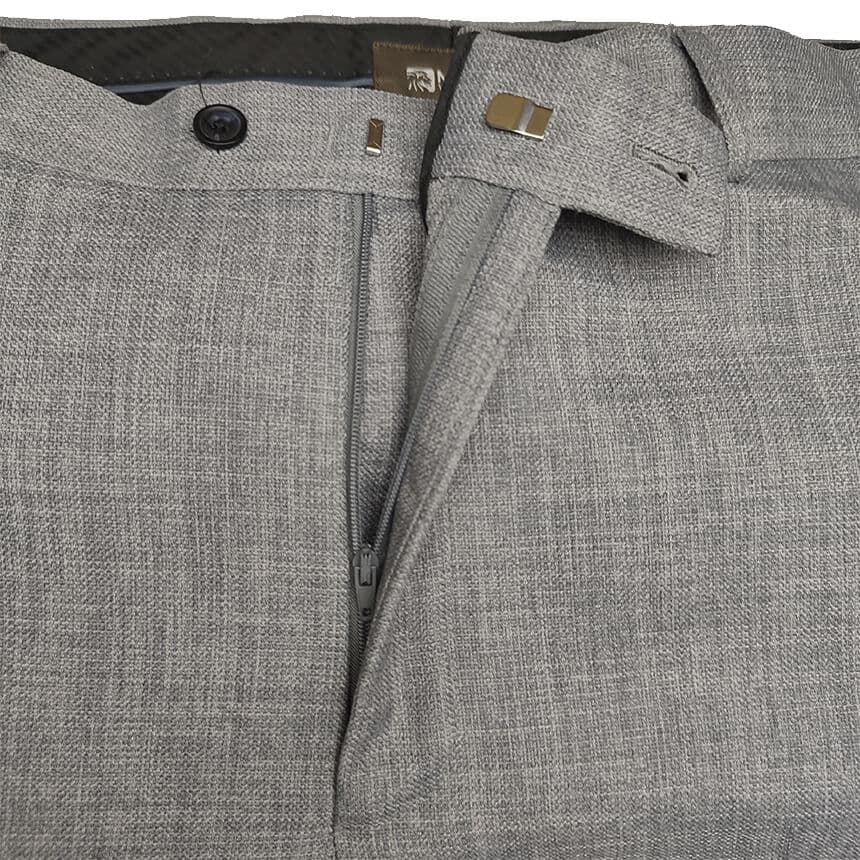 Застежка молния, пуговица и крбчок.