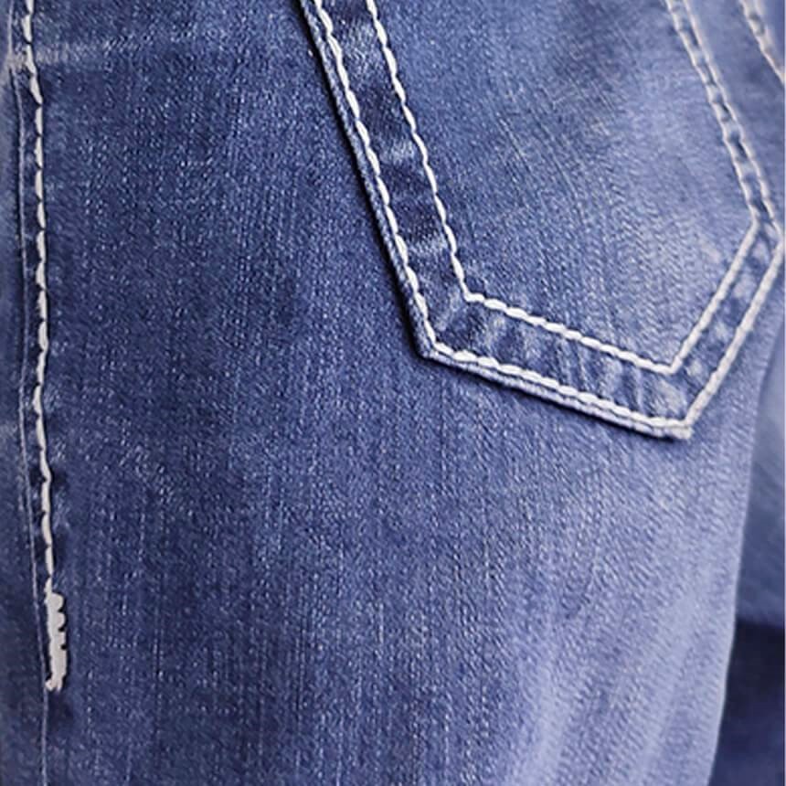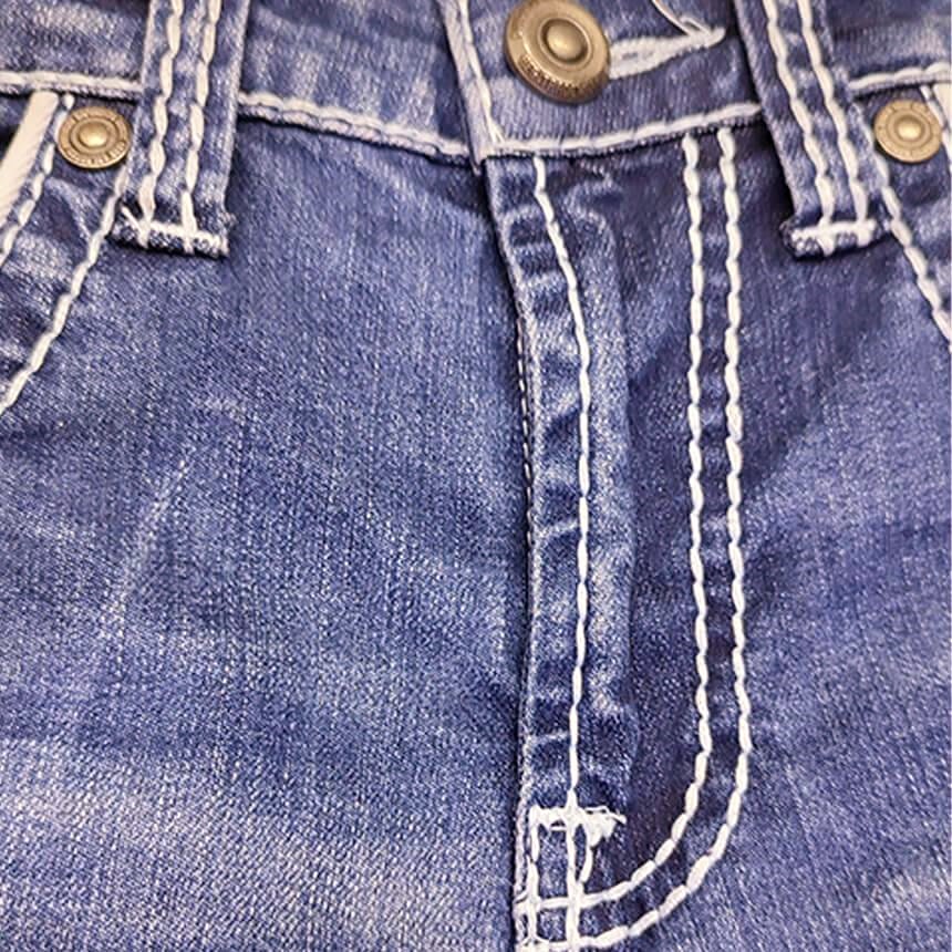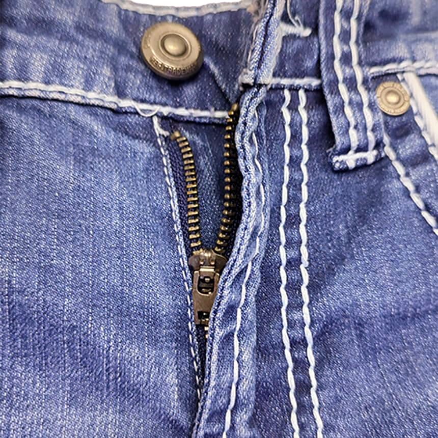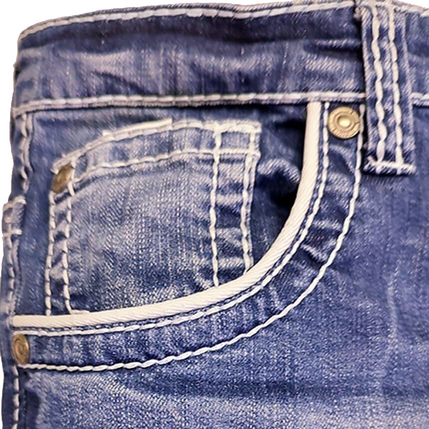 5 карманов: 3 спереди и 2 сзади, декорированы белой тесьмой.