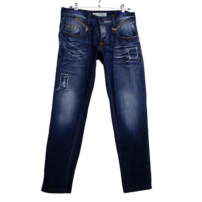 5 карманов: 3 спереди и 2 сзади. На карманах декоративные молнии.