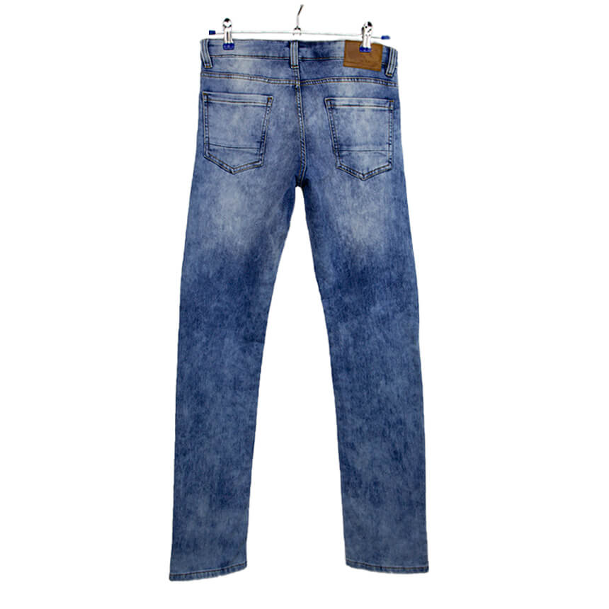 Джинсы голубого цвета с потертостями, модель Slim Fit.