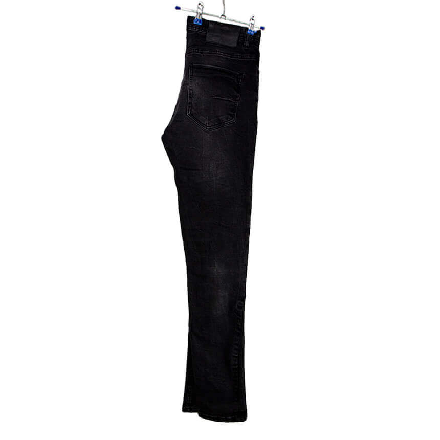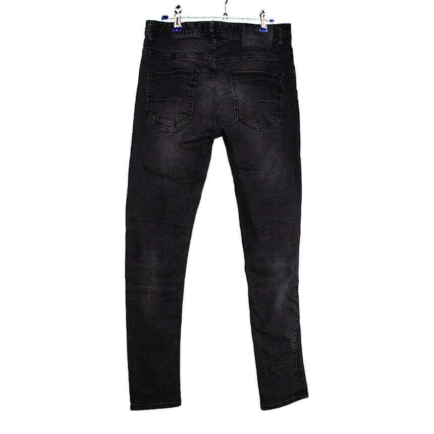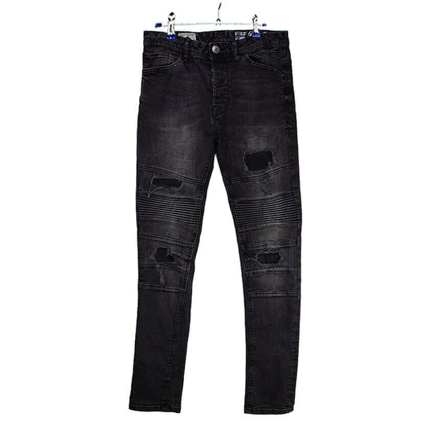 Джинсы рваные черного цвета, отрезные с отстрочками.