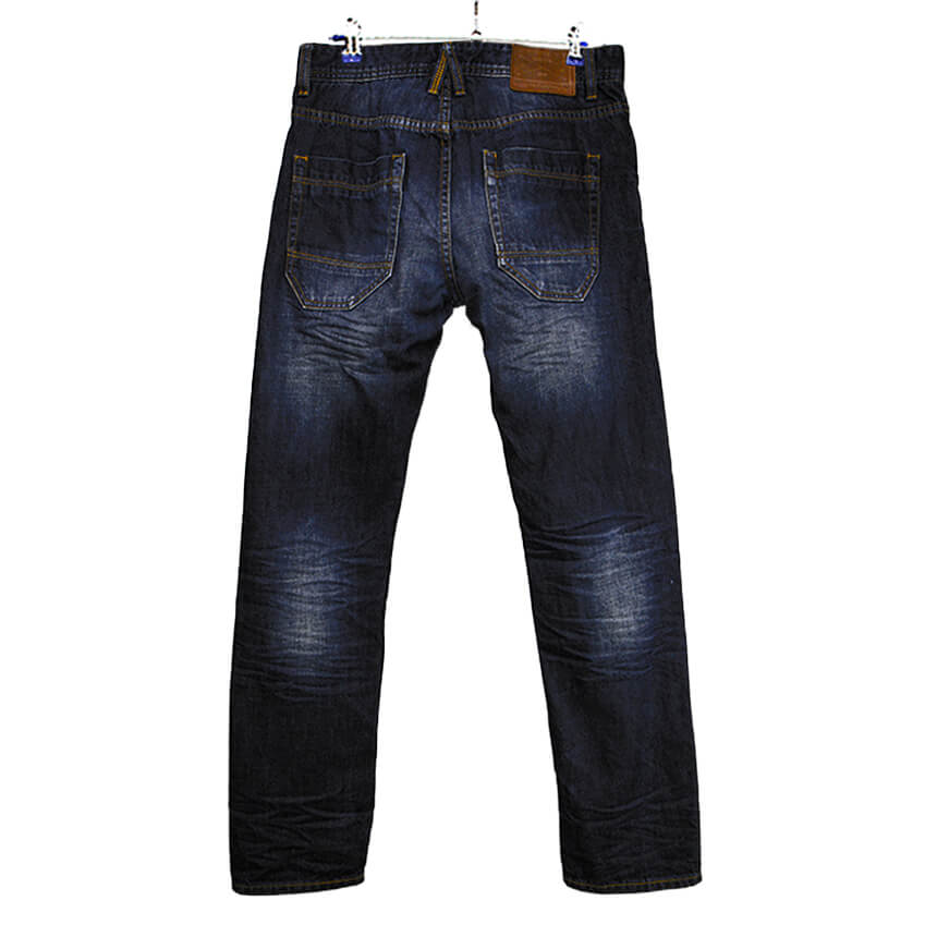 Потертости, лейбл, заклепки, прямая арка на карманах.