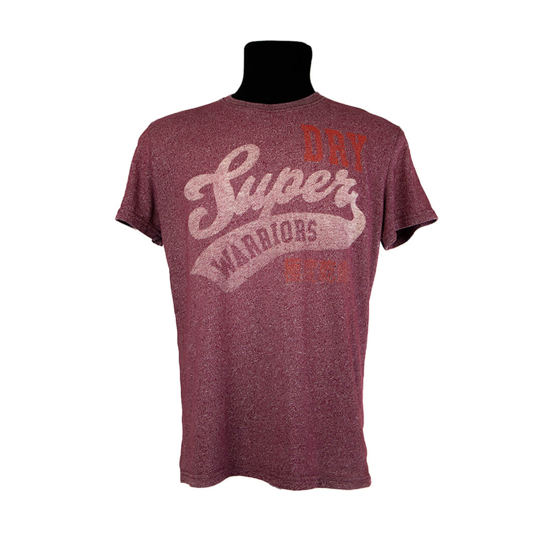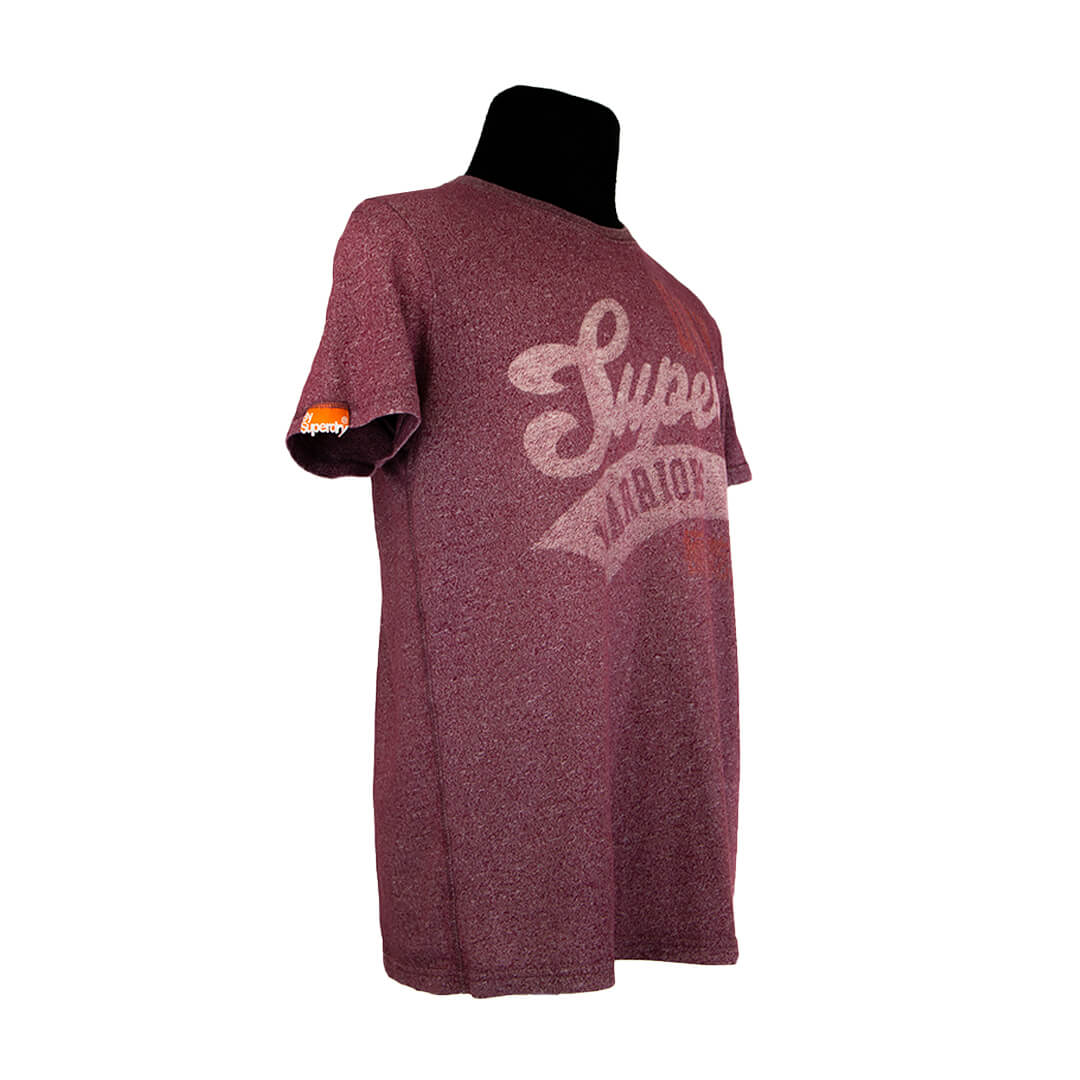 Майка темно-розового цвета с принтом спереди, на рукаве яркий лейбл.