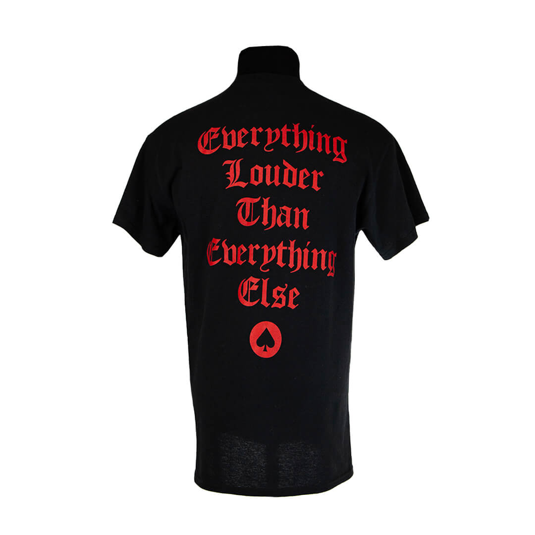 Майка бесшовная черного цвета с белым принтом спереди и красным - сзади.