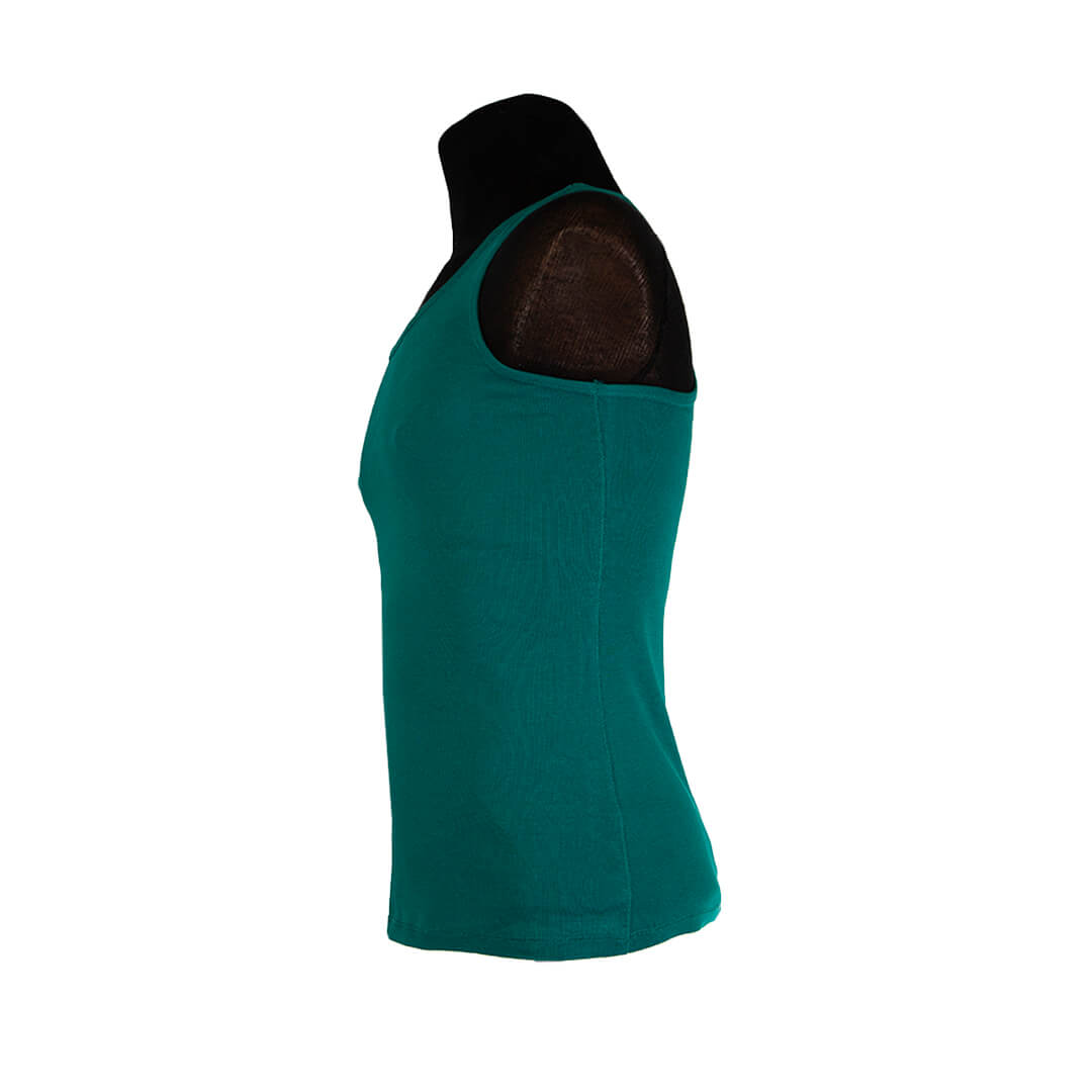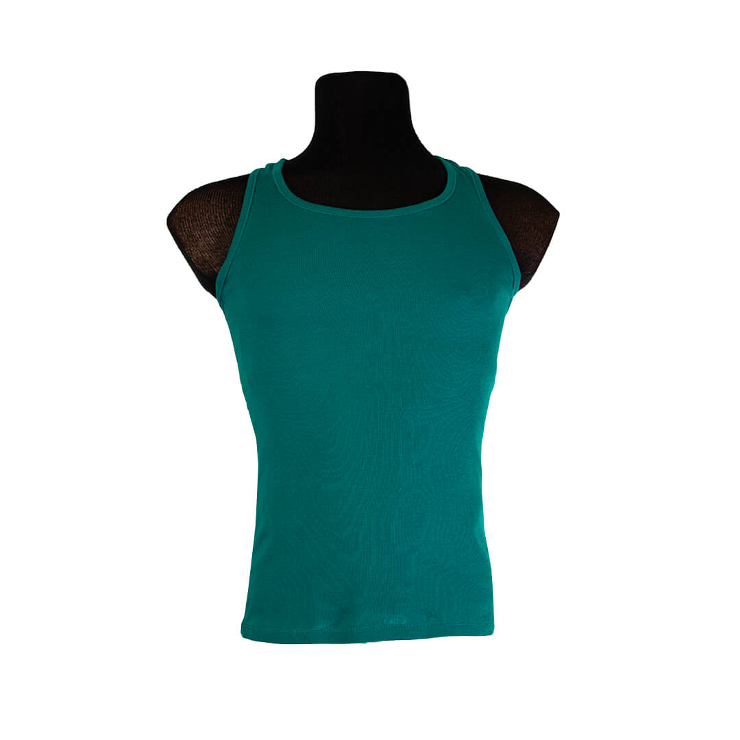 Майка яркого зеленого цвета. Глубокий вырез на груди и под мышками.