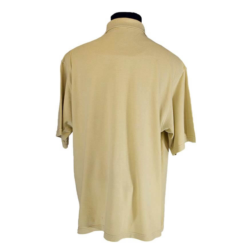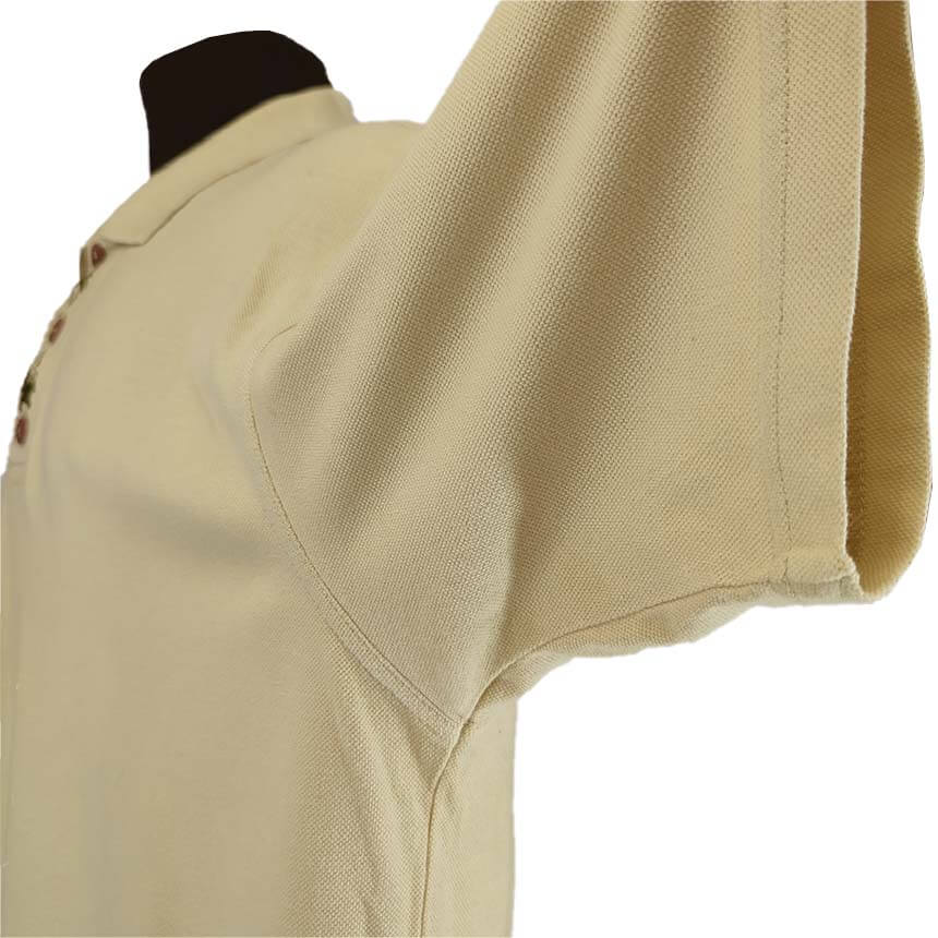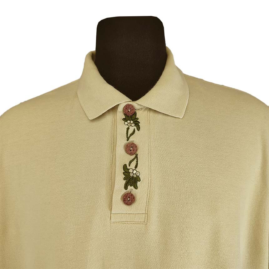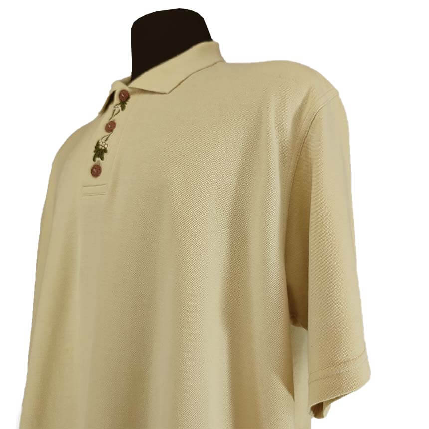 Майка-поло бежевого цвета с "цветочной" вышивкой.
