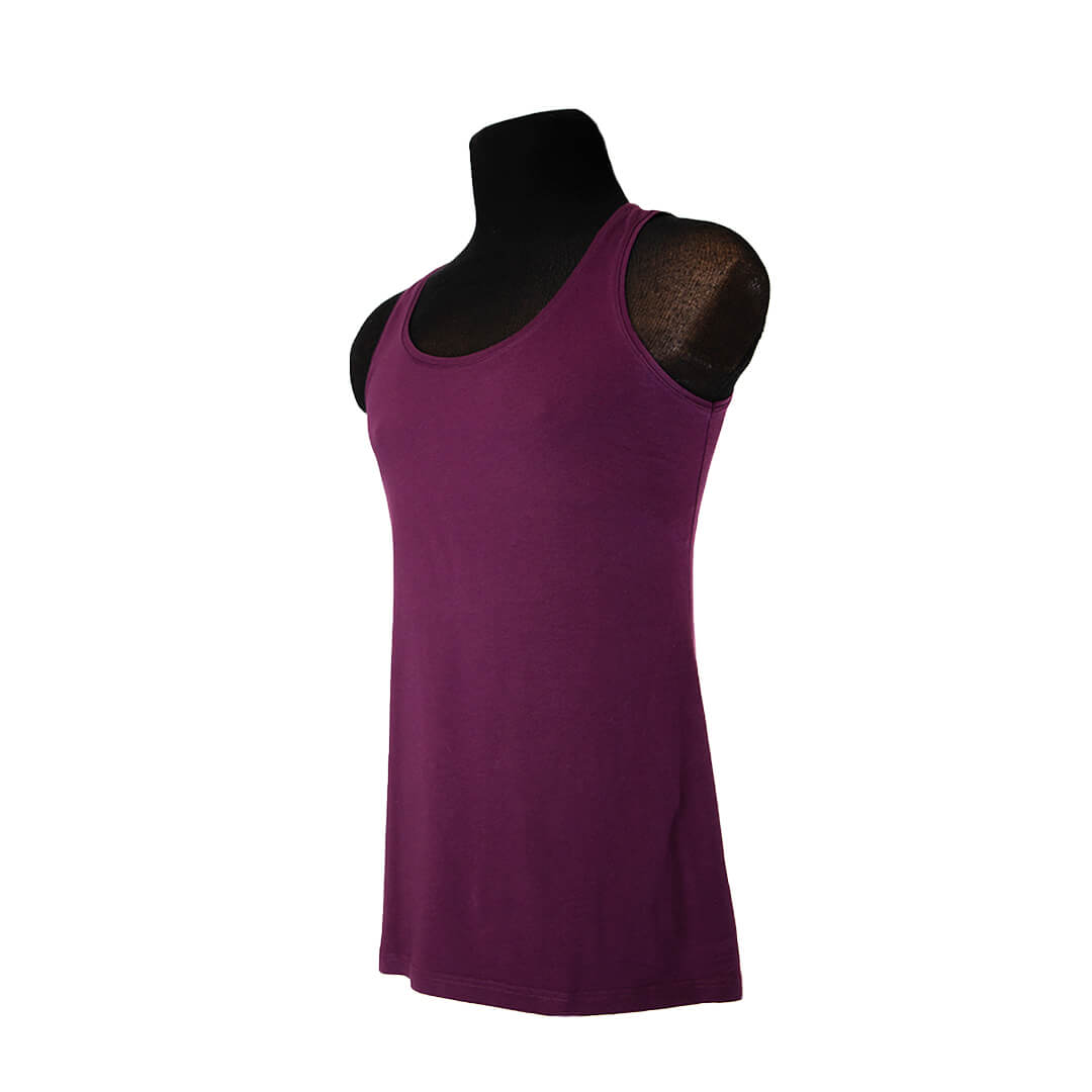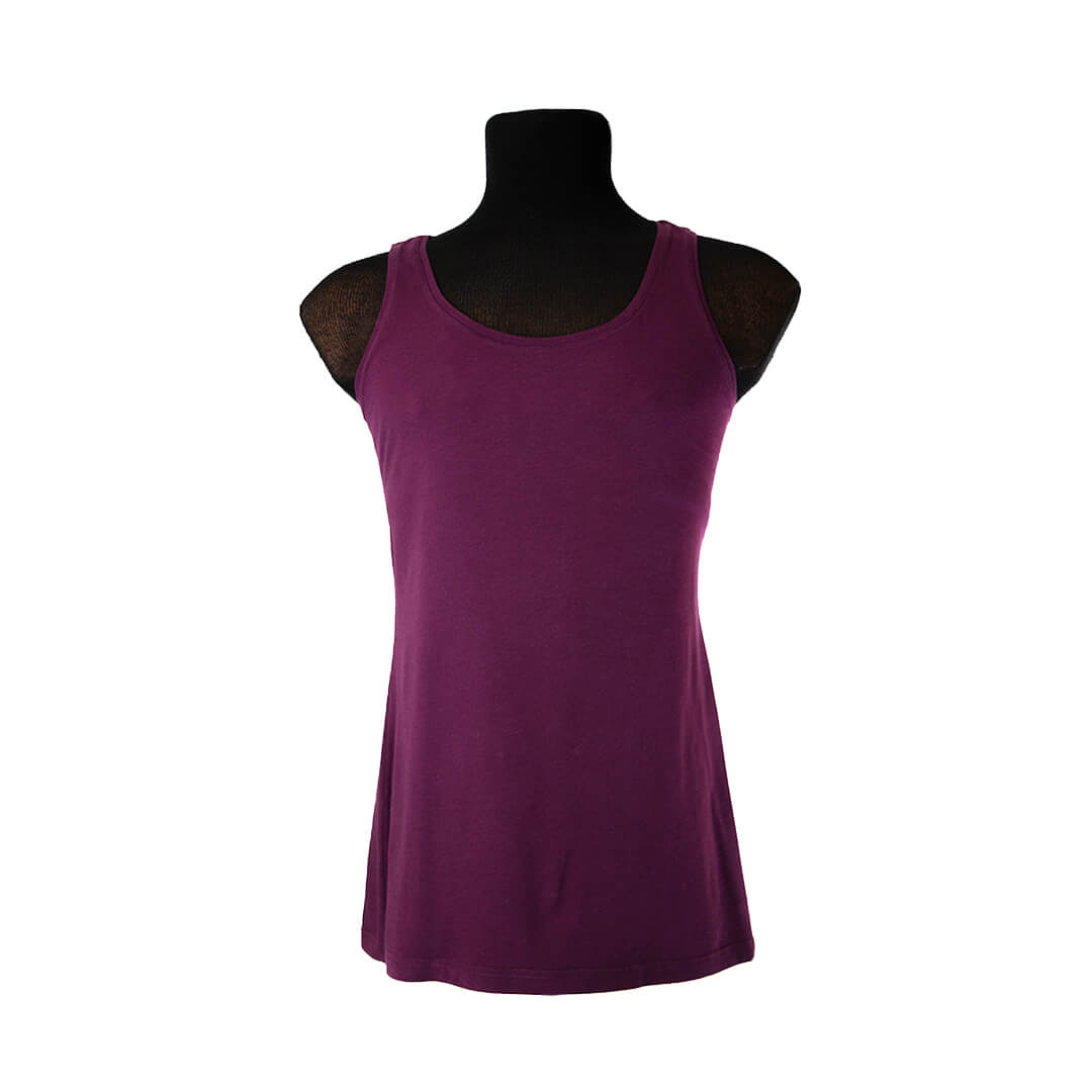 Майка насыщенного фиолетового цвета. Глубокий вырез на груди и под мышками.