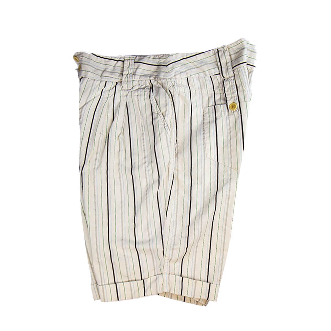 Шорты белого цвета с красивой сложной полоской: серой, зеленой и голубой. Отстрочка.