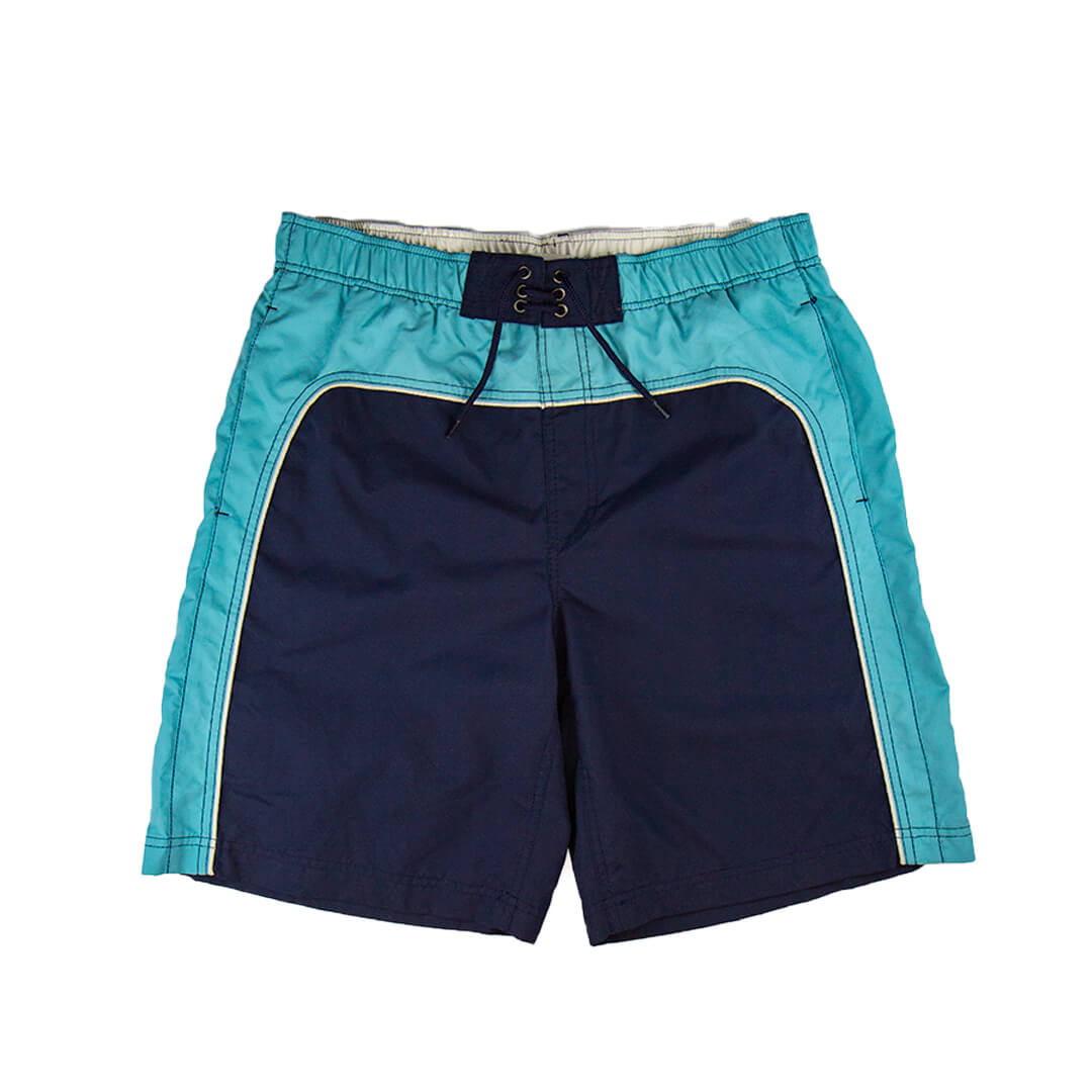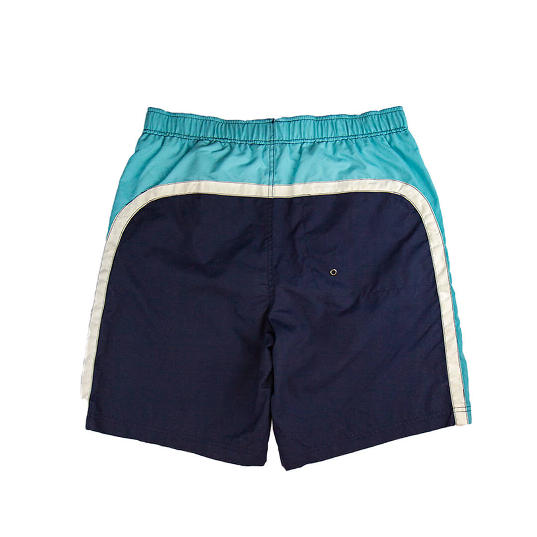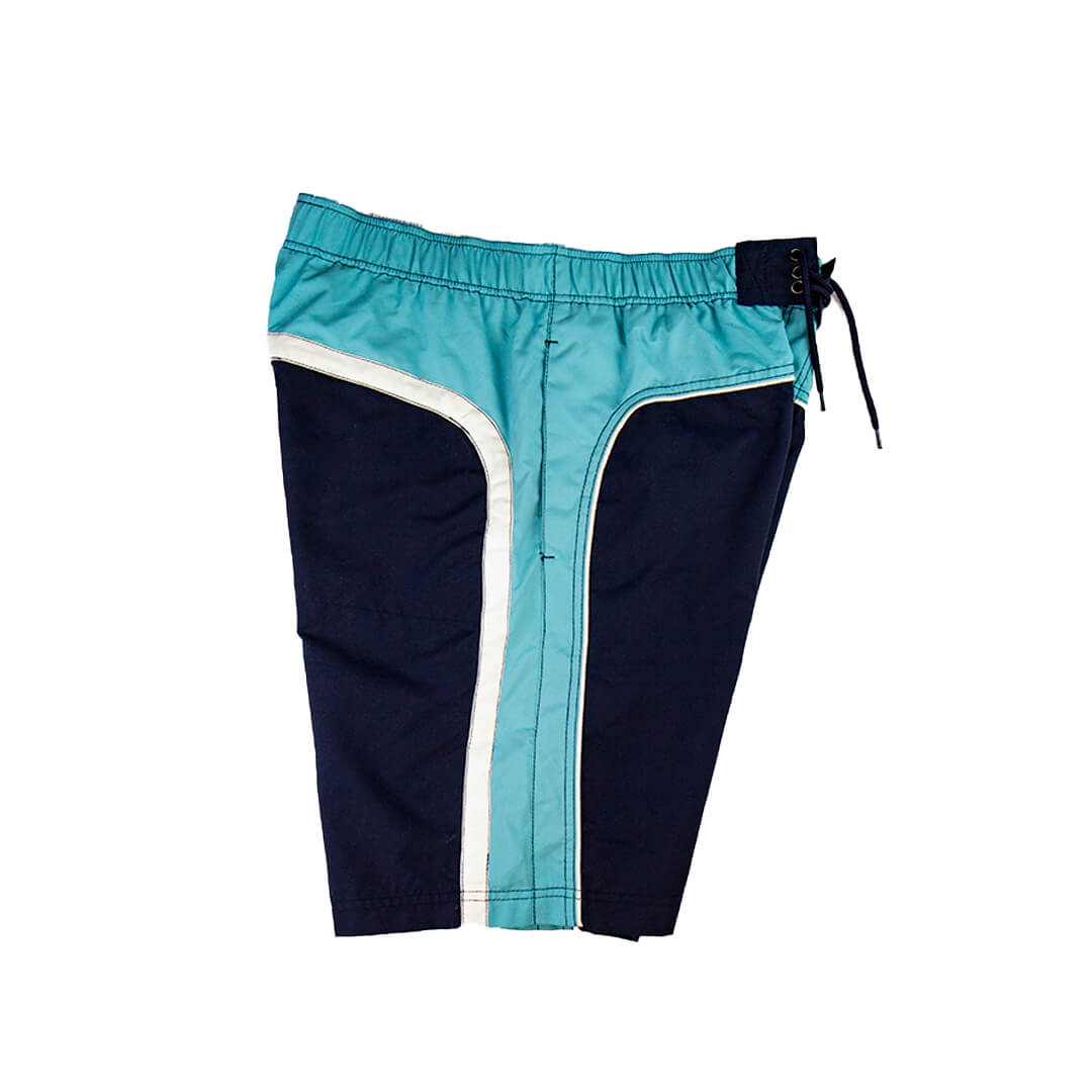 Шорты темно-синего цвета с бело-голубой отделкой. Отстрочка. Внури трусы-сеточка.