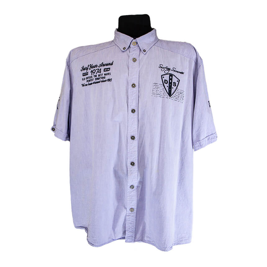 Сорочка благородного бледно-фиолетового цвета с принтом. Вышивка, на плечах погоны.