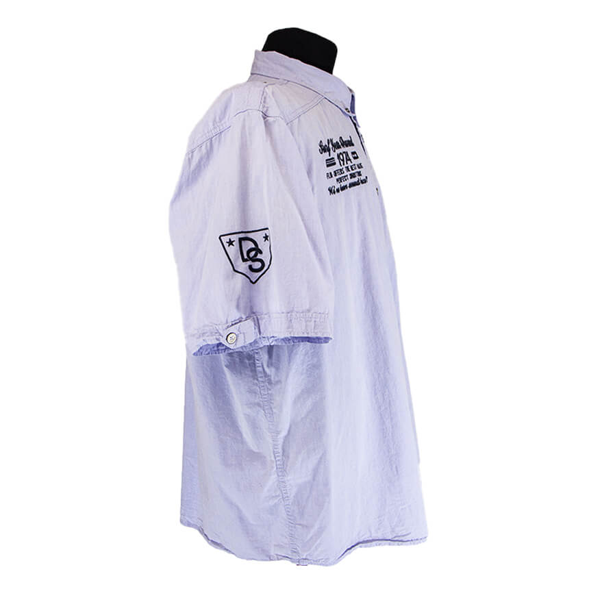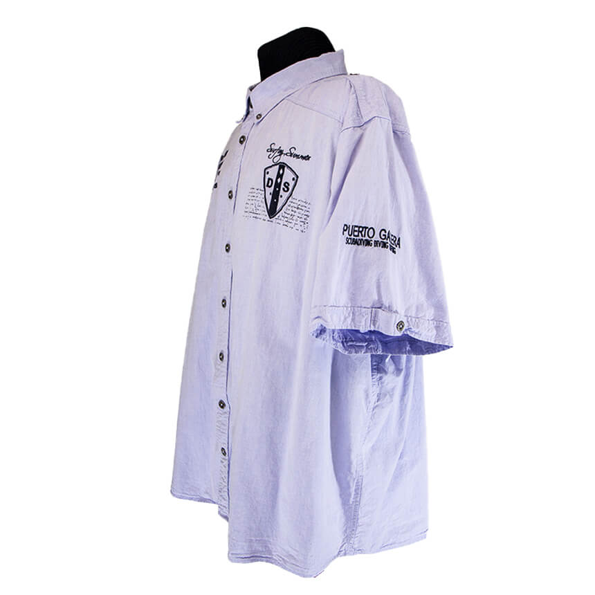 Короткий рукав. Застегивается на пуговицы.
