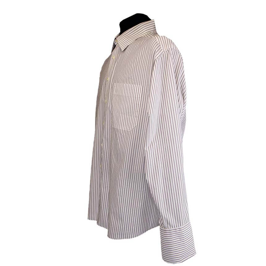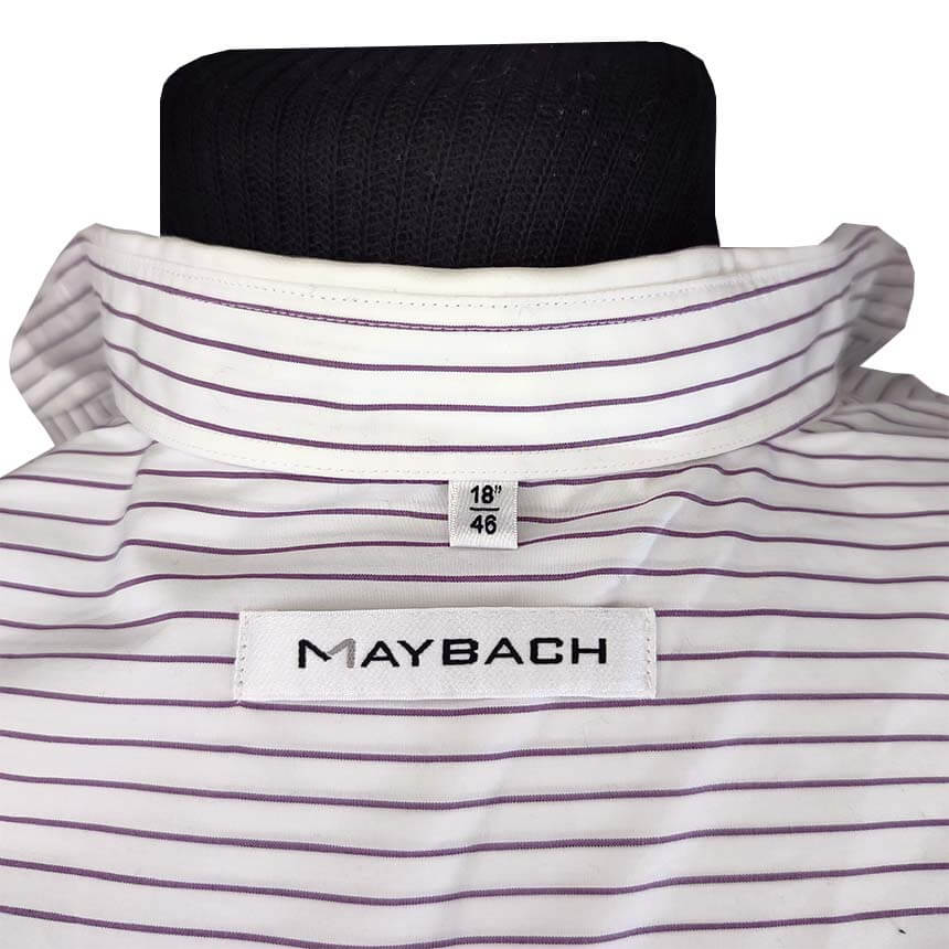Элегантная мужская рубашка из Европы от популярного бренда Maybach. Белая в светло-фиолетовую полоску.