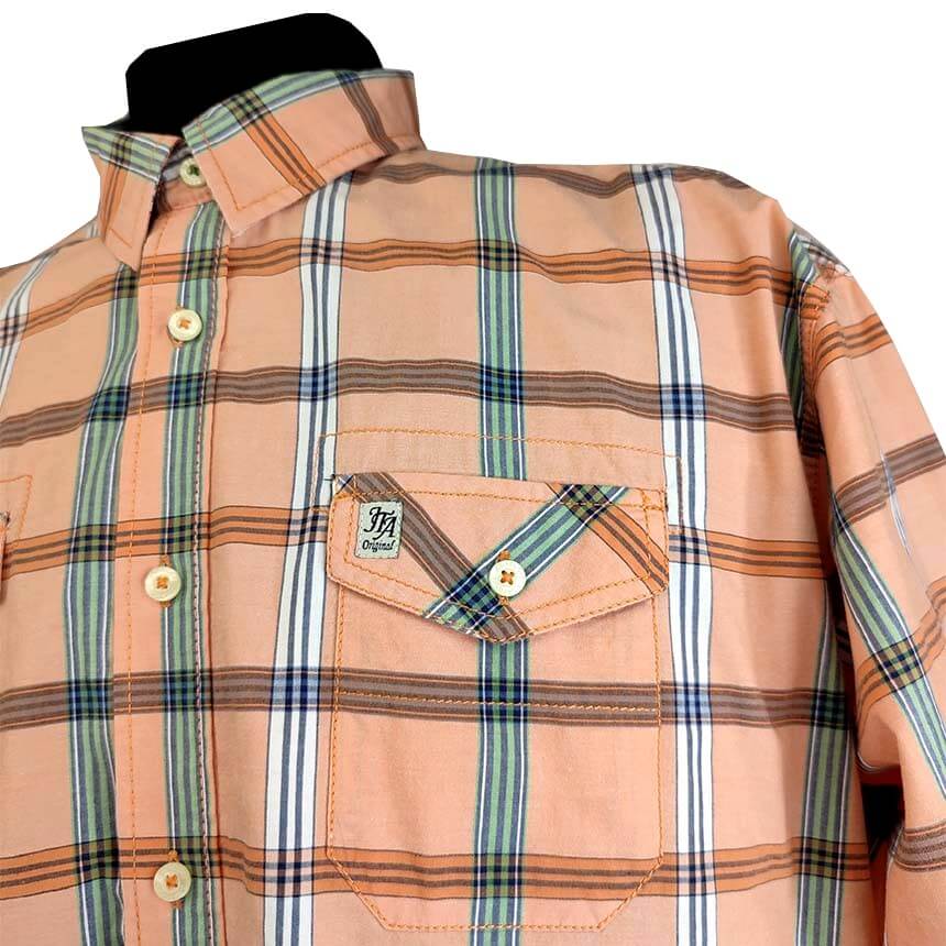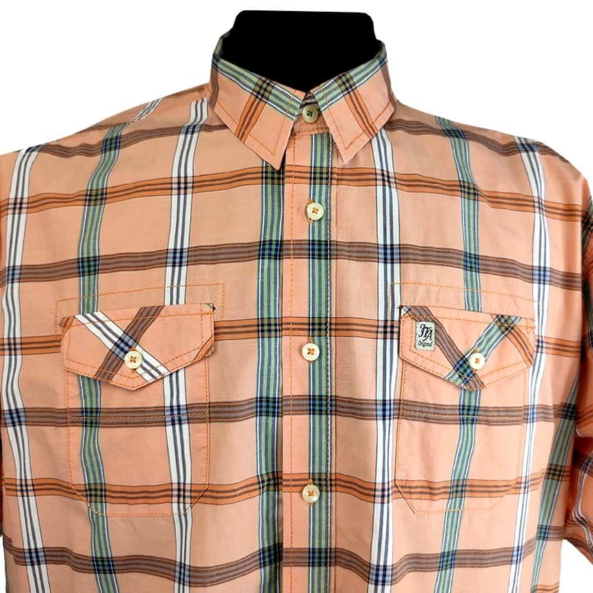 Рубашка приятного оранжевого цвета в клетку. Модель Reguliar fit.