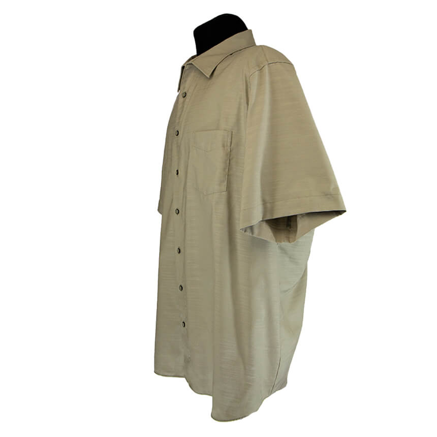 Короткий рукав. Застегивается на пуговицы.