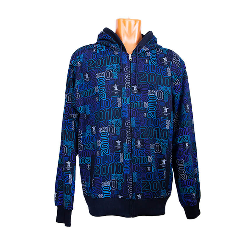 Байка серого цвета с принтом - разноцветными цифрами, с капюшоном.