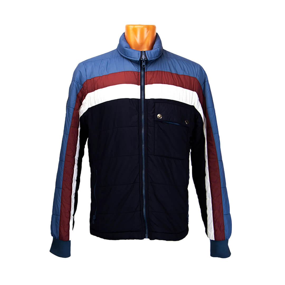 Модная мужская куртка из Европы - двусторонняя. С одной стороны - сине-голубая с бело-бардовыми полосами, с другой - голубая.