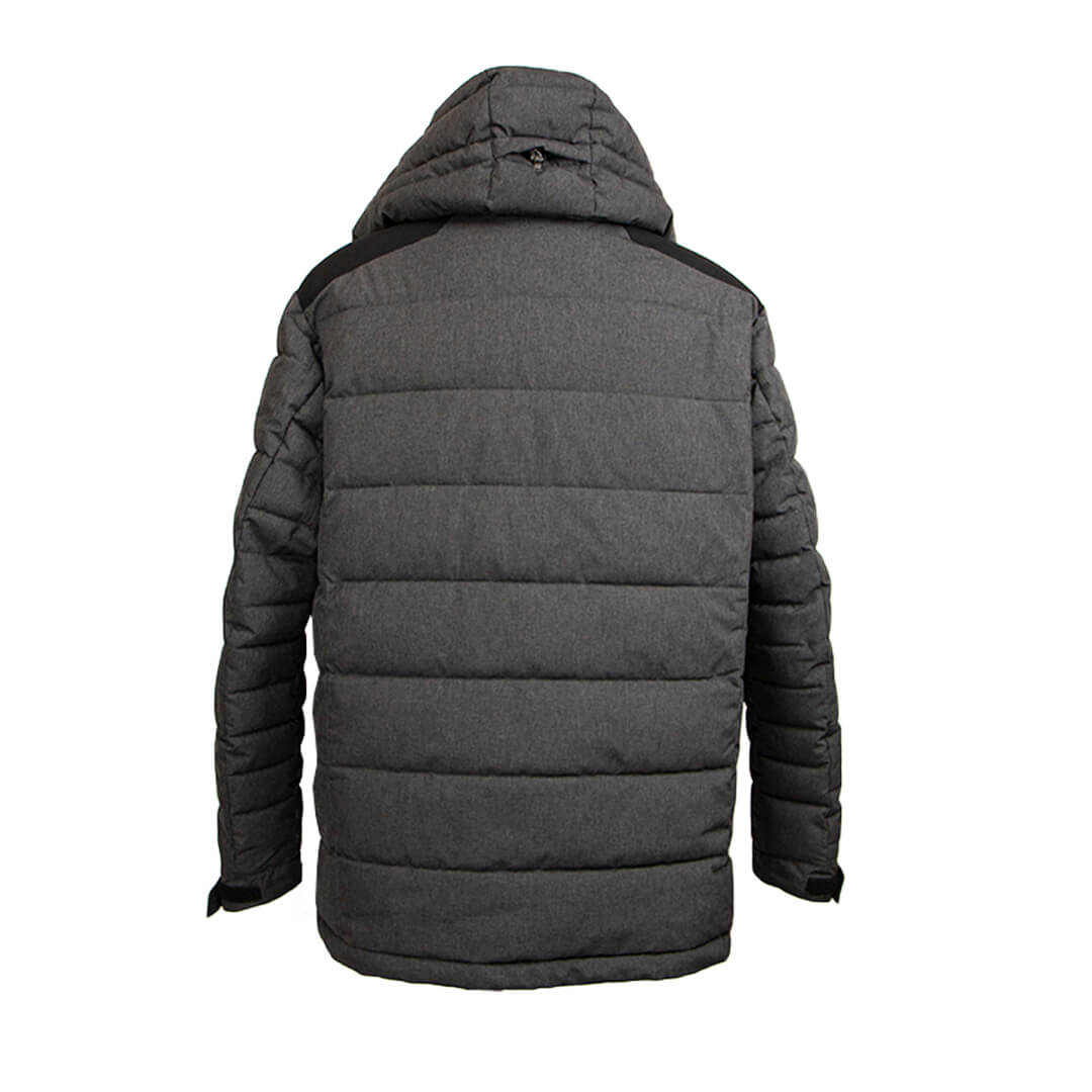 Куртка серого цвета с капюшоном. Капюшон отстегивается, регулируется по объему спереди и на затылке.