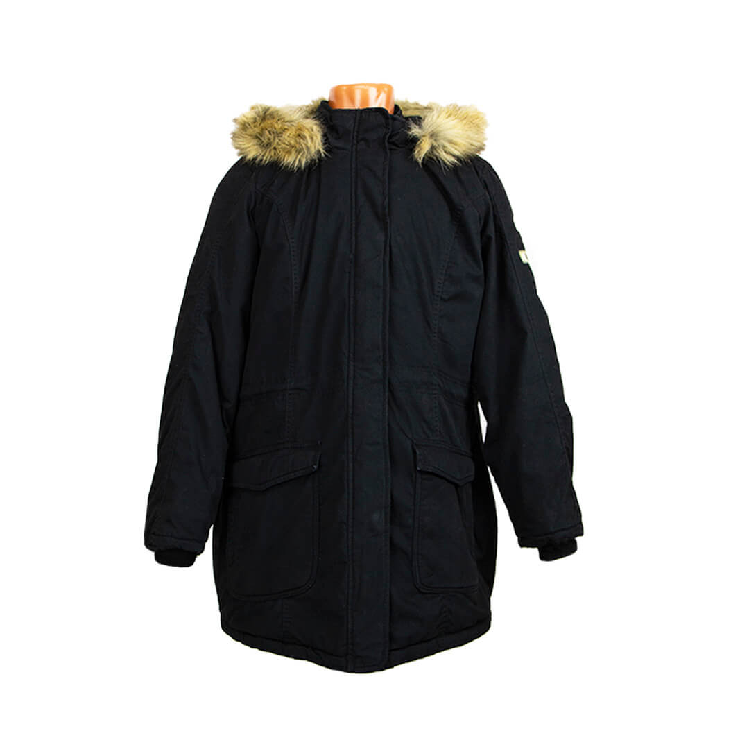 Куртка черного цвета с капюшоном. Капюшон и опушка отстегиваются.