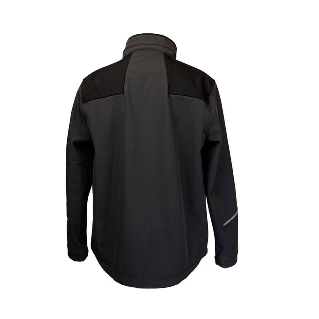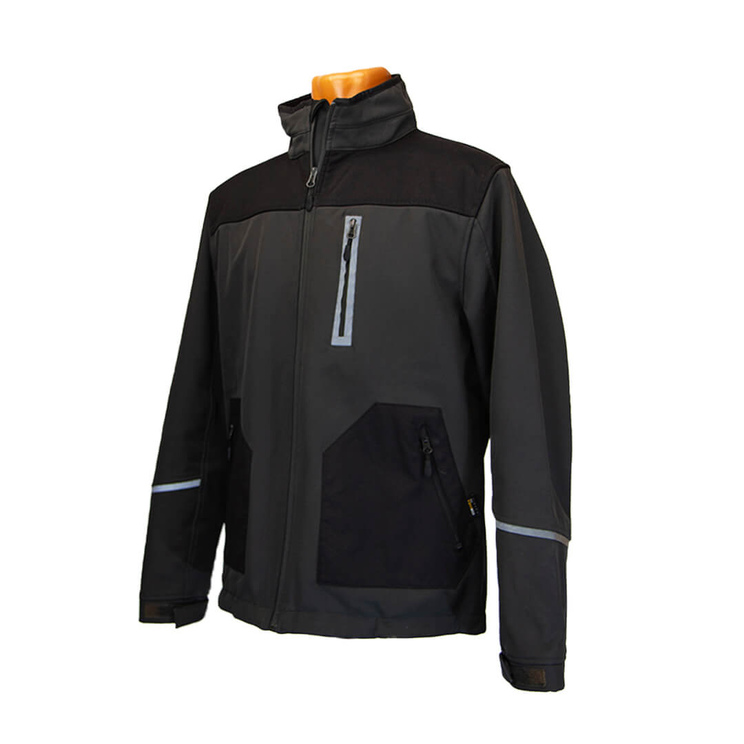 Куртка серого цвета с черными вставками.