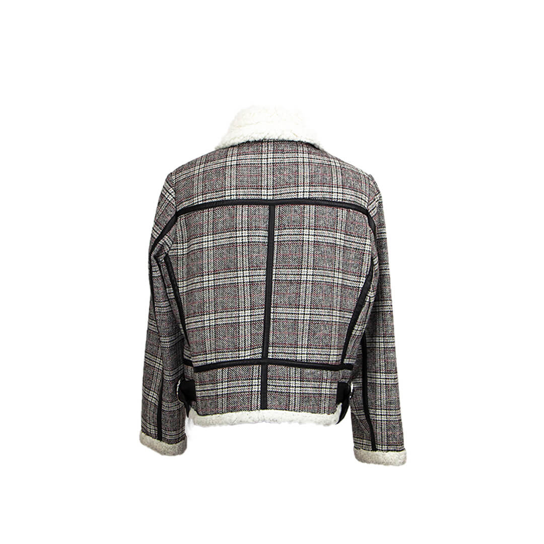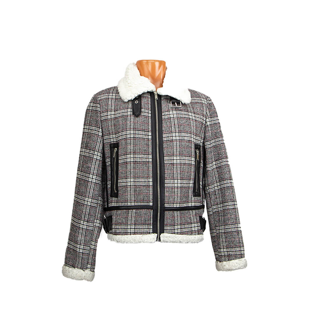 Куртка укороченная серого цвета в клеточку без капюшона.