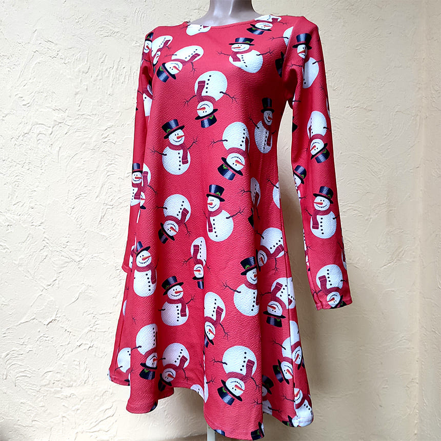 Красное платье с веселыми снеговиками - само новогоднее очарование!