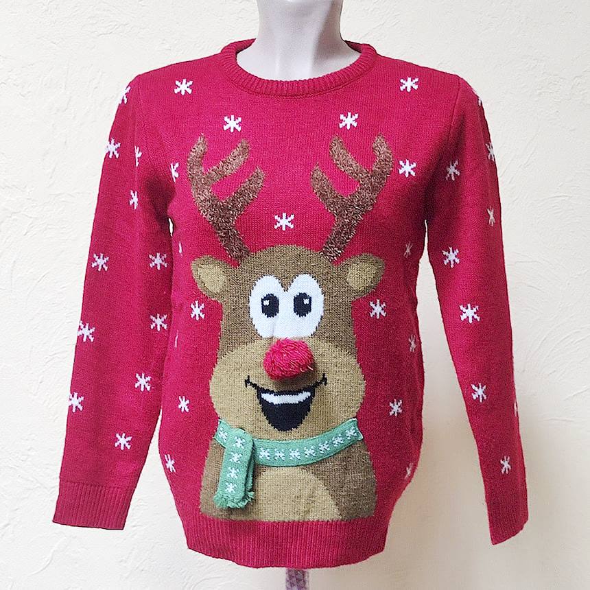 Мягкий красный свитер с рождественским оленем - настоящий праздник!