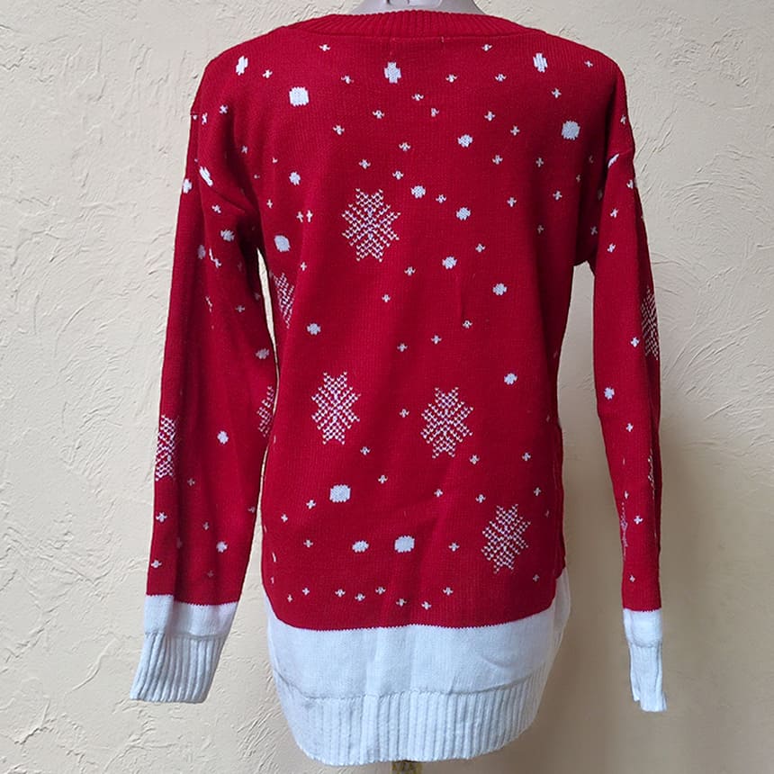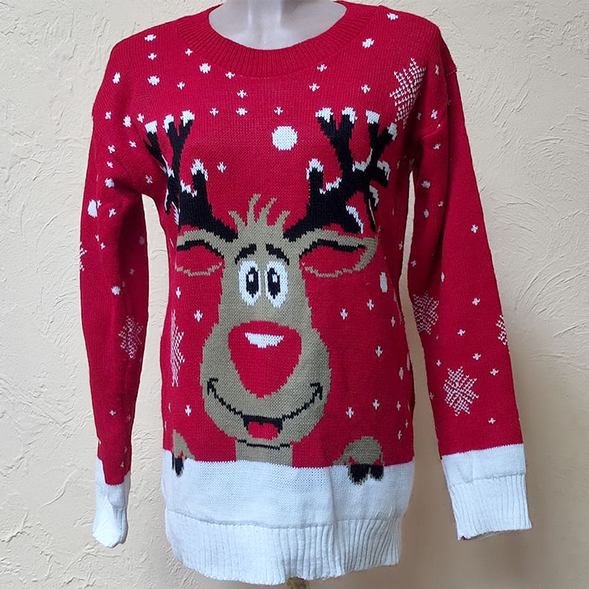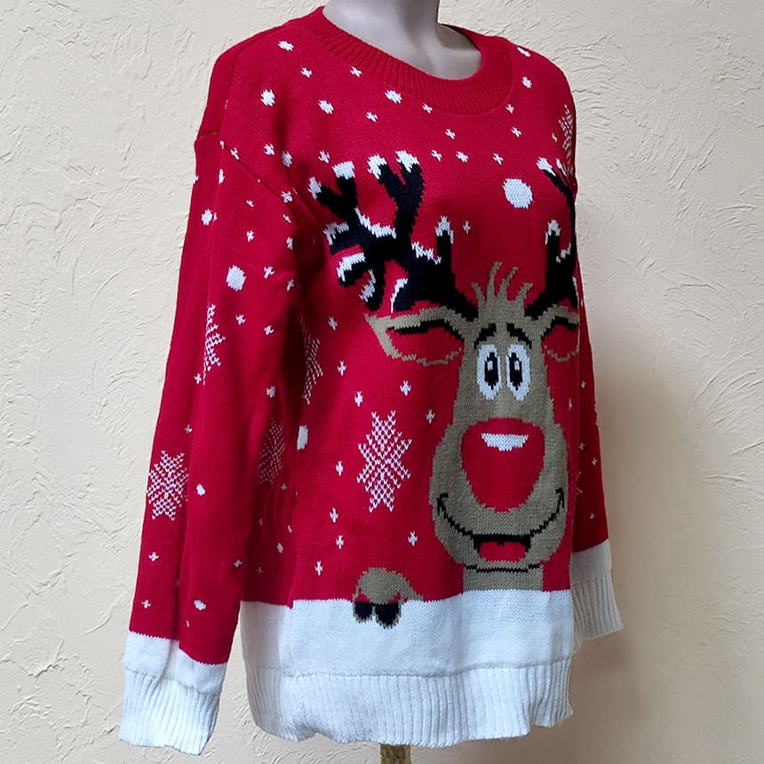 Мягкий и уютный красный свитер с оленем, снежинками.