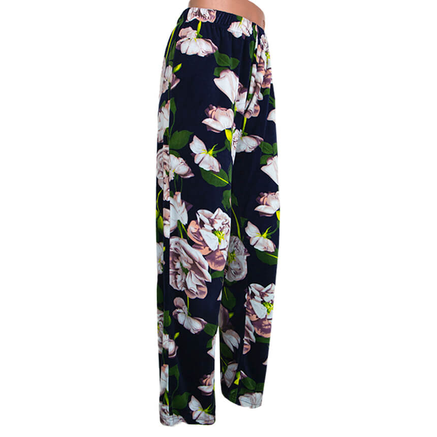 Пижамные штаны темно-синего цвета с цветочным принтом.