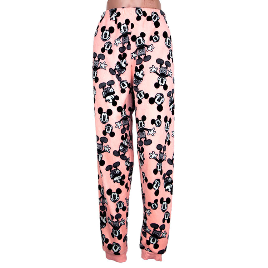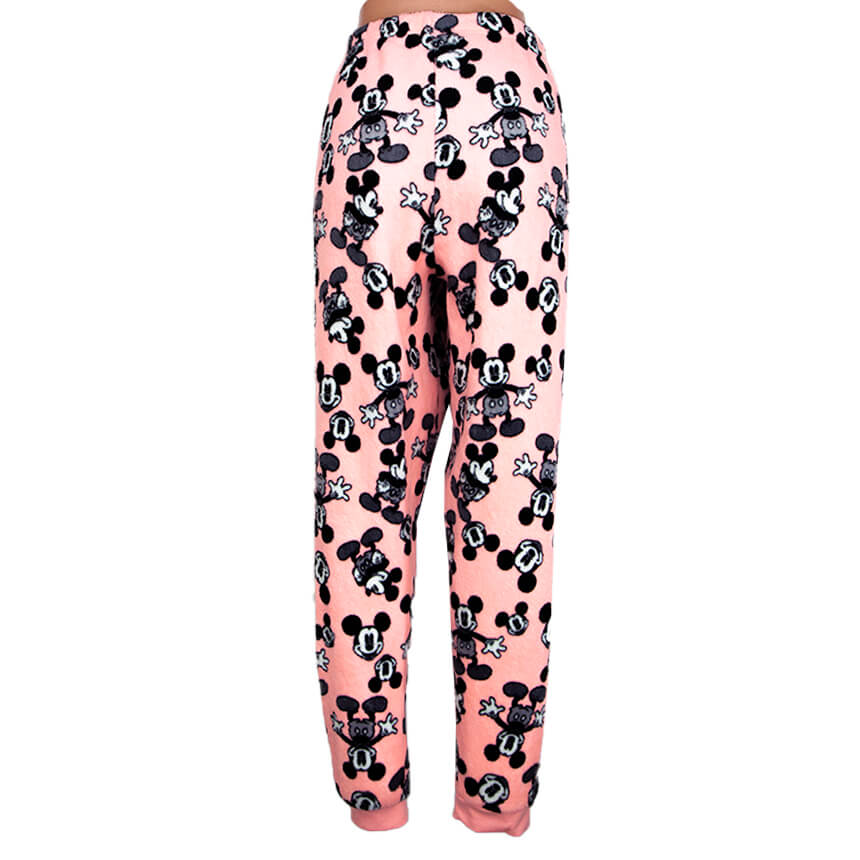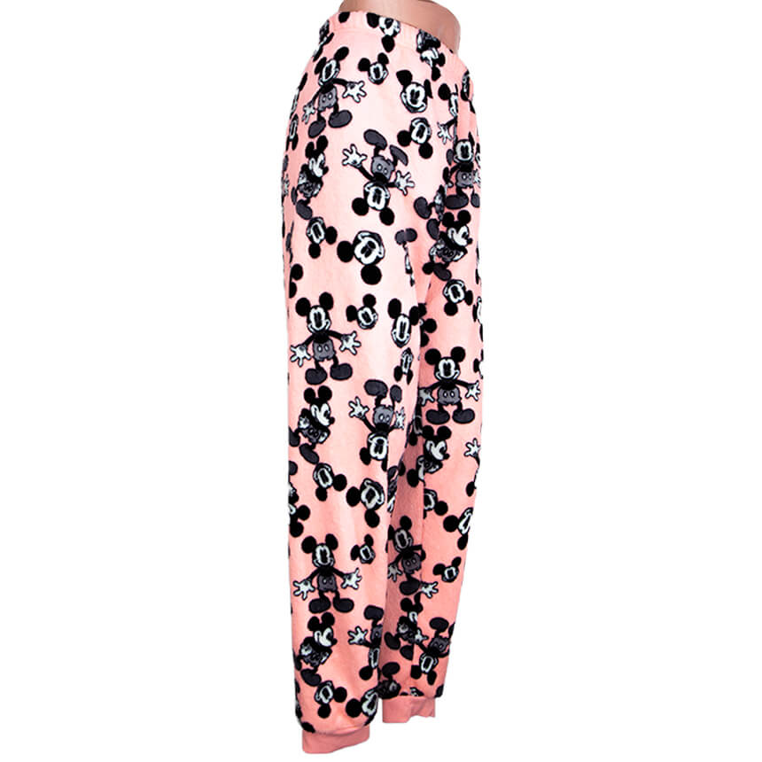 Пижамные штаны розового цвета с черными микимаусами.