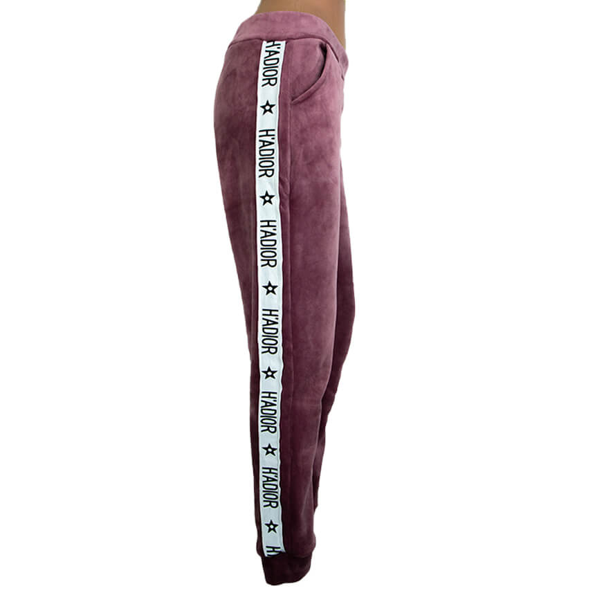 Пижамные штаны темно-розового цвета с лампасами.
