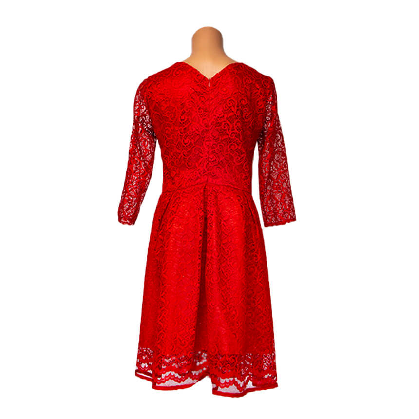 Платье классического кроя с овальным вырезом на груди и V-образным на спине. Отрезное по талии, сзади на молнии.