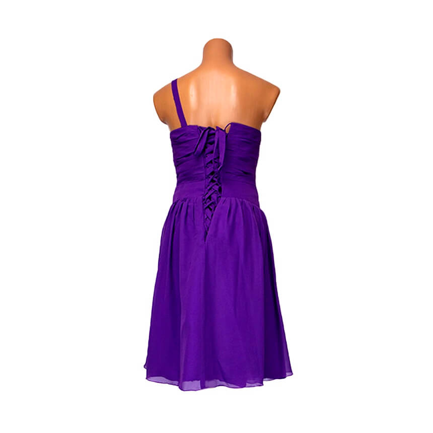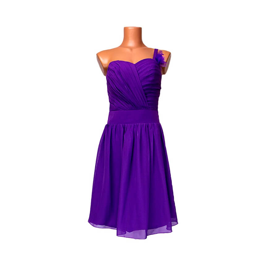Платье с открытыми плечами, с бретелькой на одно плечо. Отрезное по талии, с изящной сборкой на груди.