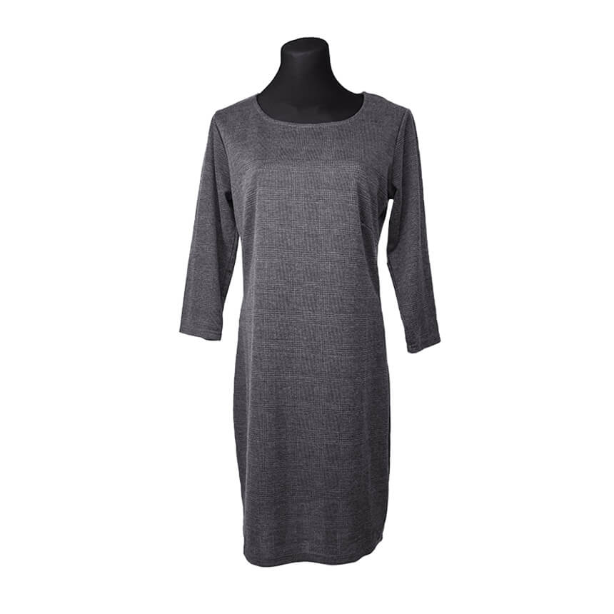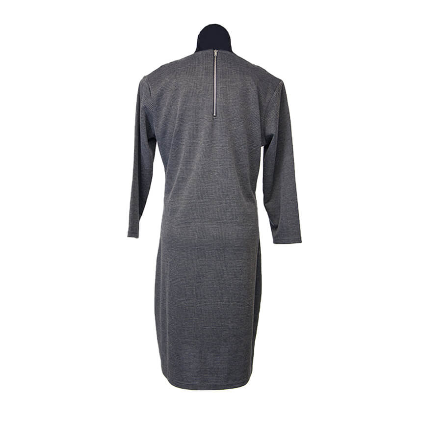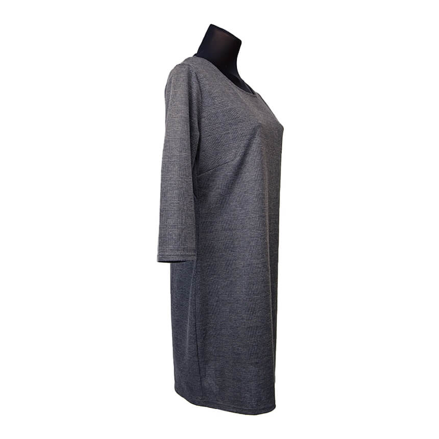 Благородный серый цвет в мелкую клетку. Рукав 34, круглый вырез.