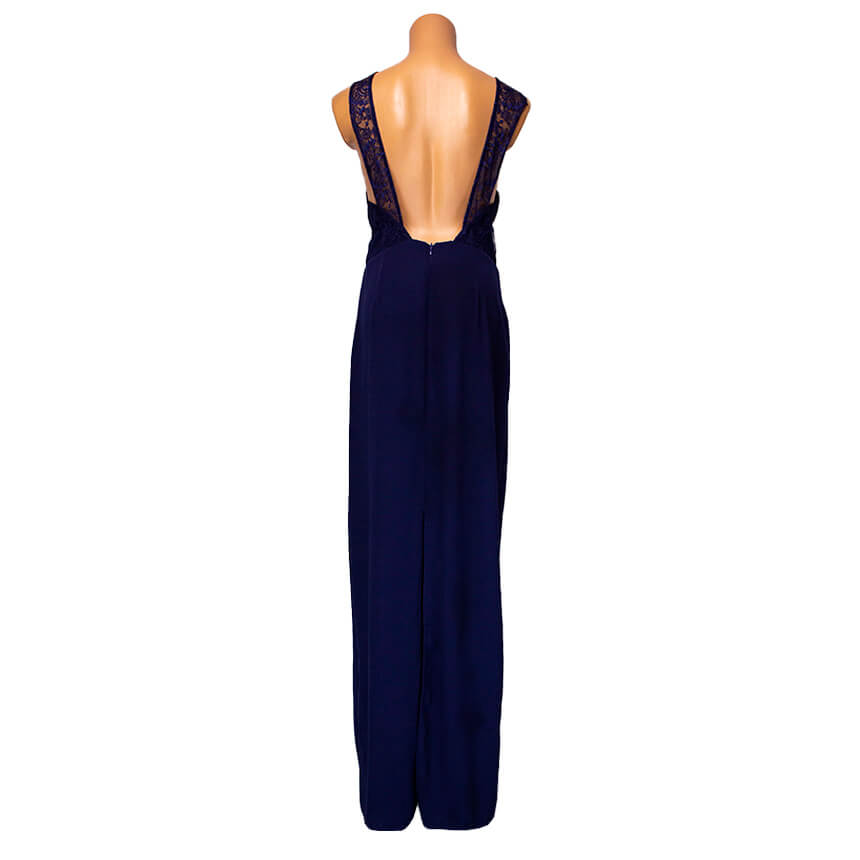 Открытые плечи, спереди на плечах и на спине - широкие круженые бретельки. Сзади разрез.