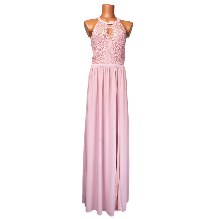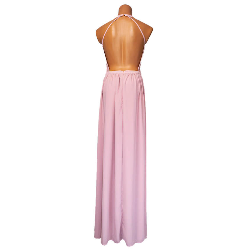 Платье, отрезное по талии, с открытыми плечами и открытой спиной.