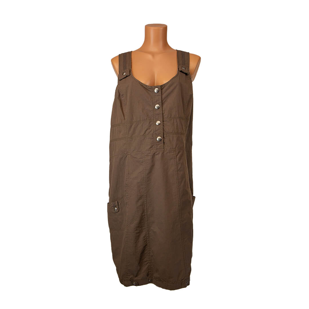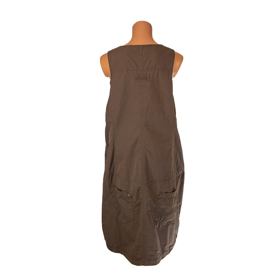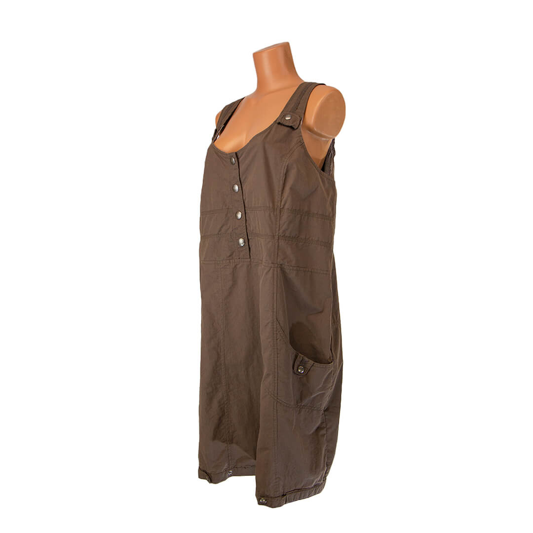 Сарафан благородного серо-коричневого цвета. 4 кармана - по 2 спереди и сзади, планка на груди.