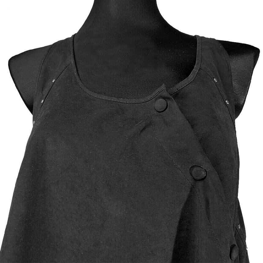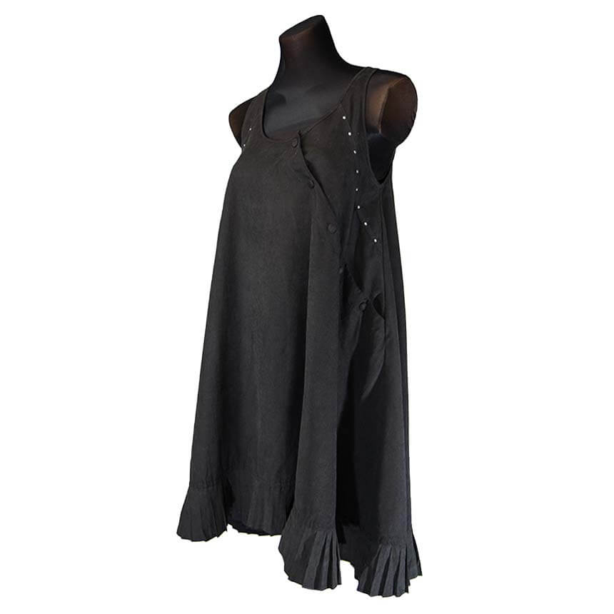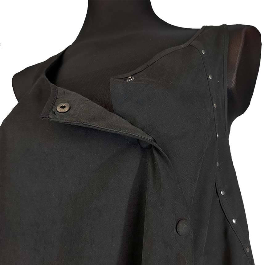 Кнопки на косой шлице по груди. На пройме оригинальная отделка с заклепками.