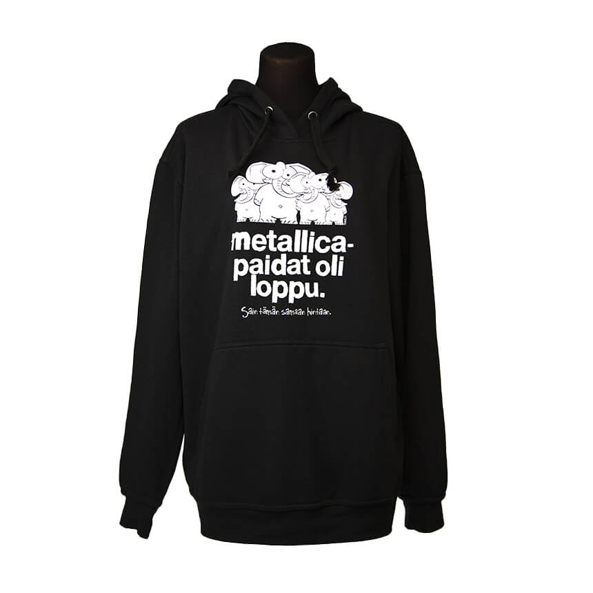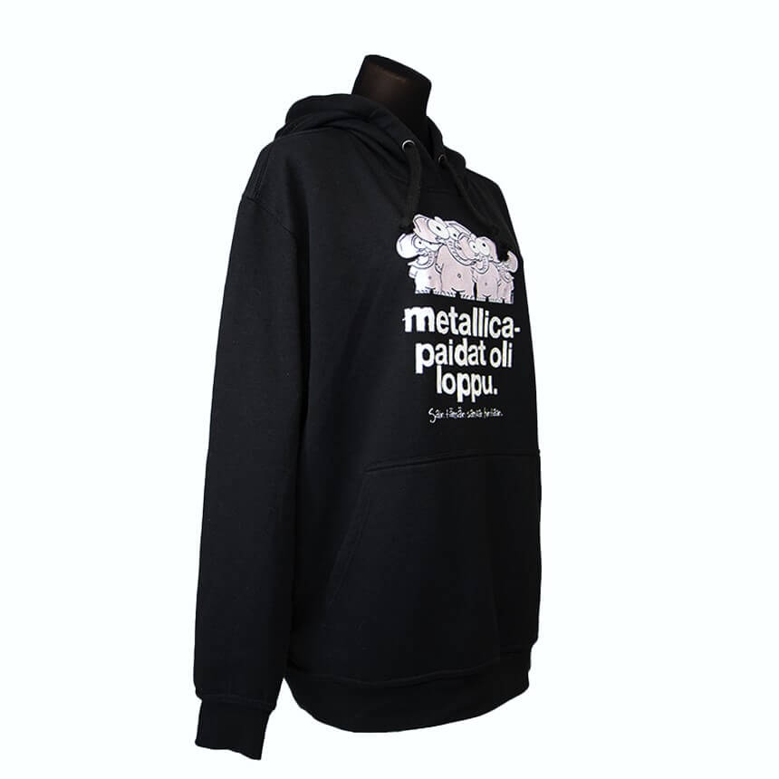 Худи черного цвета с ярким принтом-слониками. Карман-кенгуру, с капюшоном. Застежка молния.
