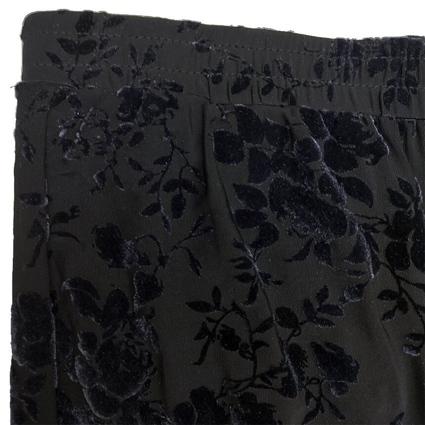 Модель клеш. Брюк прозрачные с "бархатными розами" на подкладке.