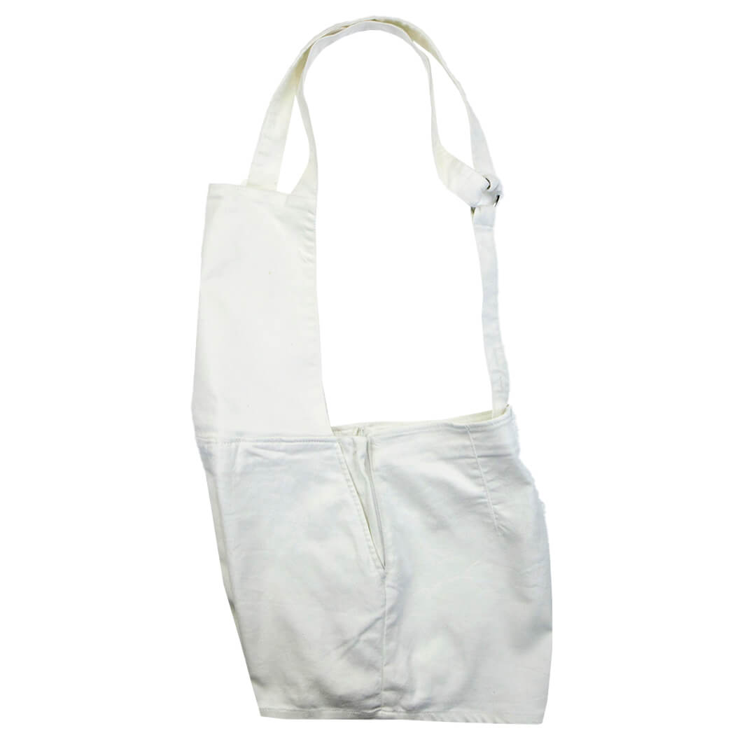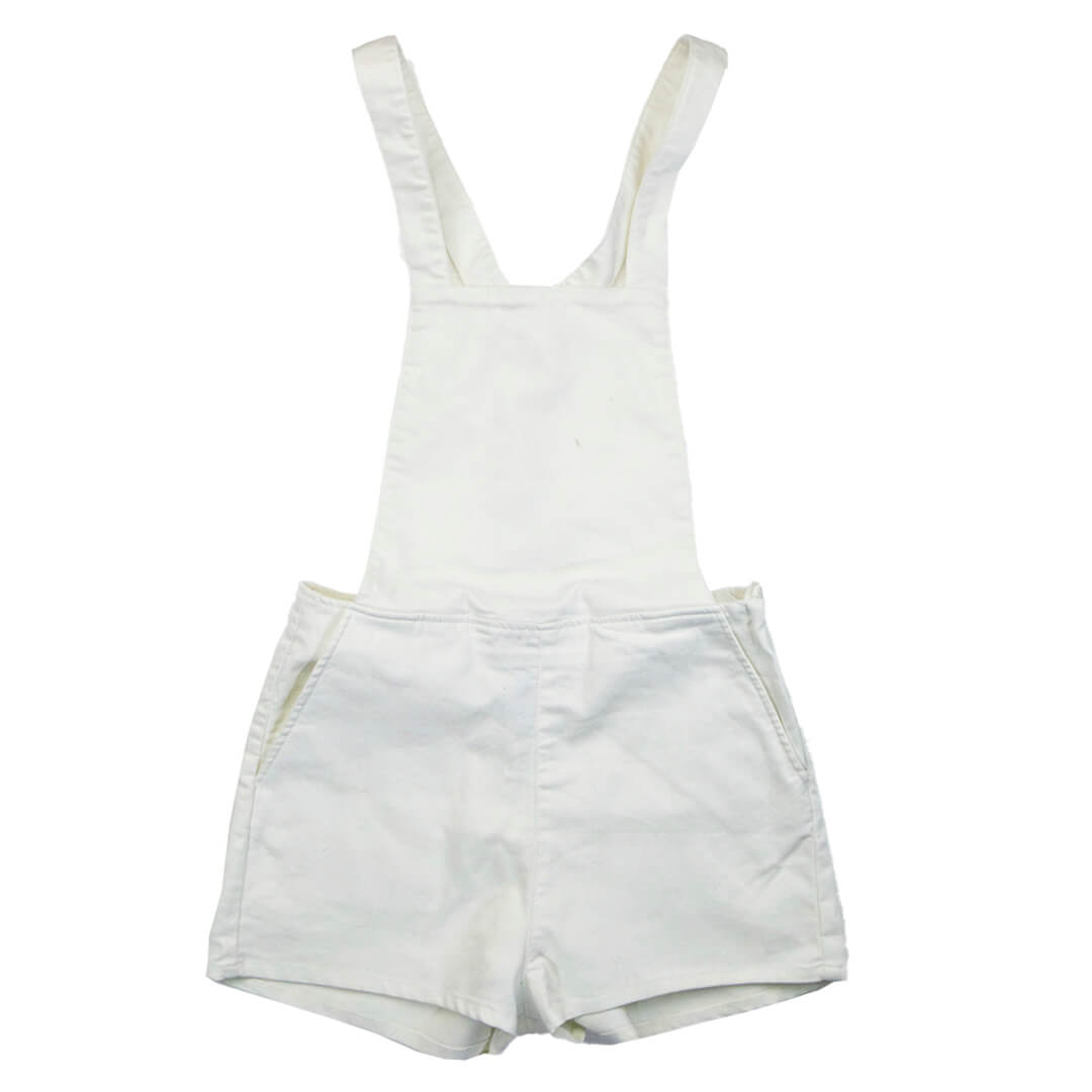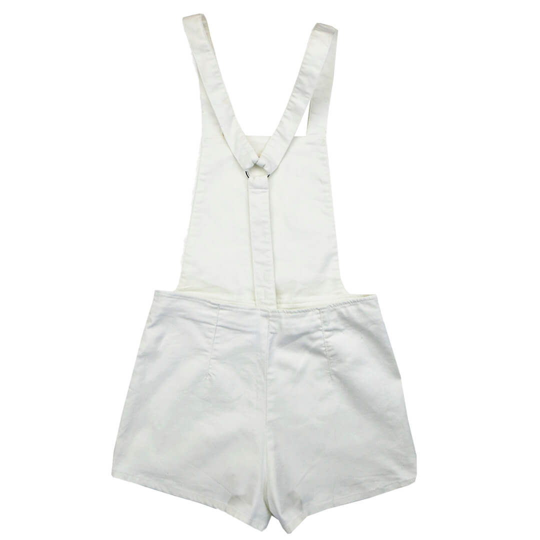 Комбинезон белого цвета. Вытачки, регулировка по высоте шлеек, длина шлеек от пояса 48 см.