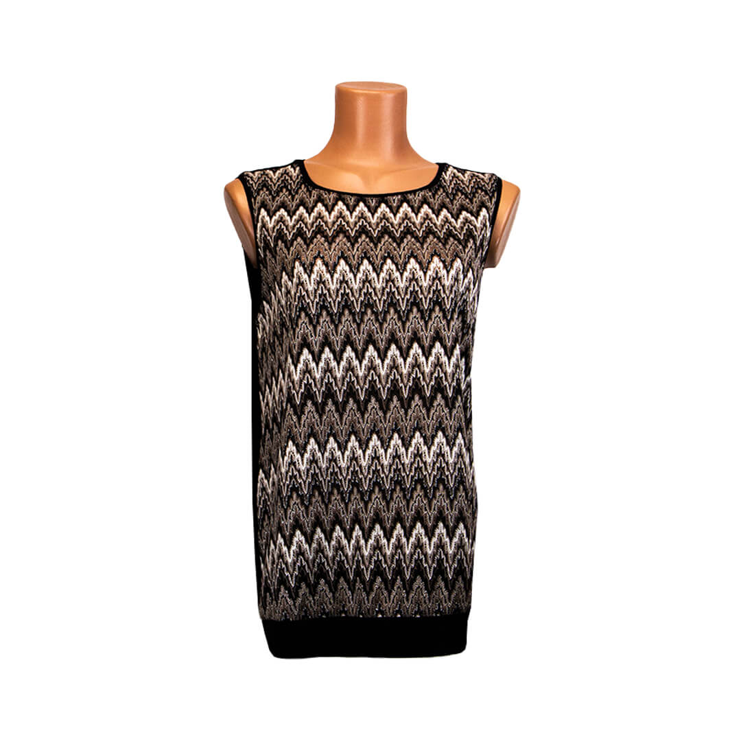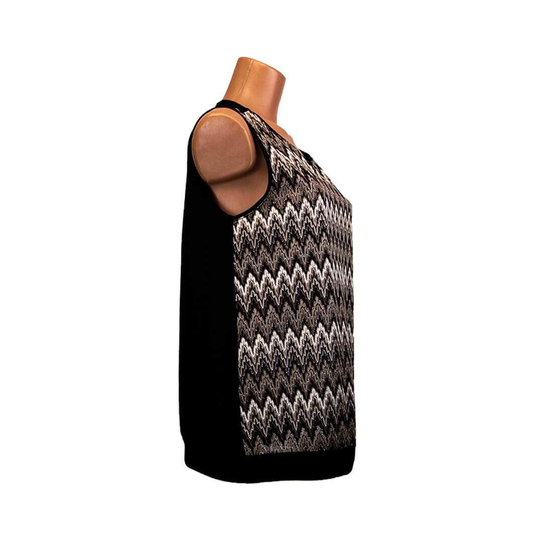 Блуза черного цвета, спереди плотная блестящая ткань "в елочку".