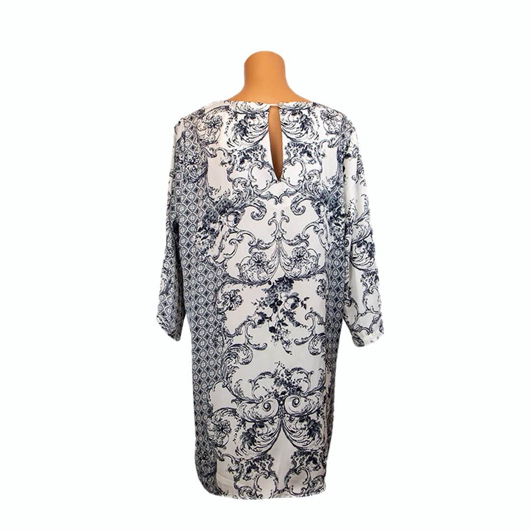 Отложной воротничок спереди, сзади застежка - пуговица. Разрезы по бокам.