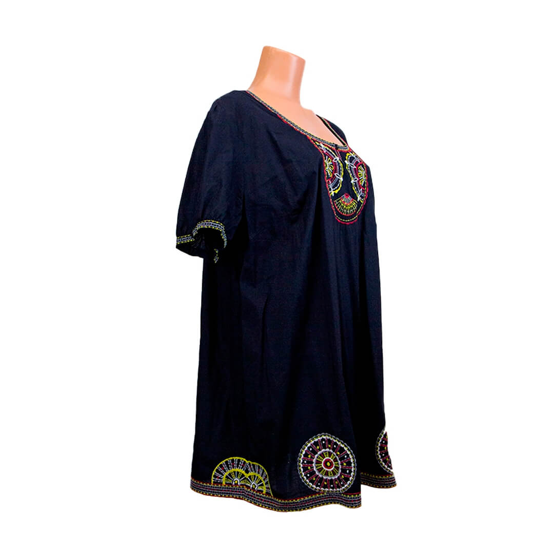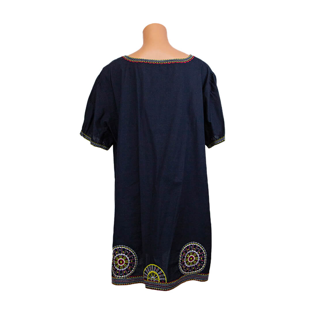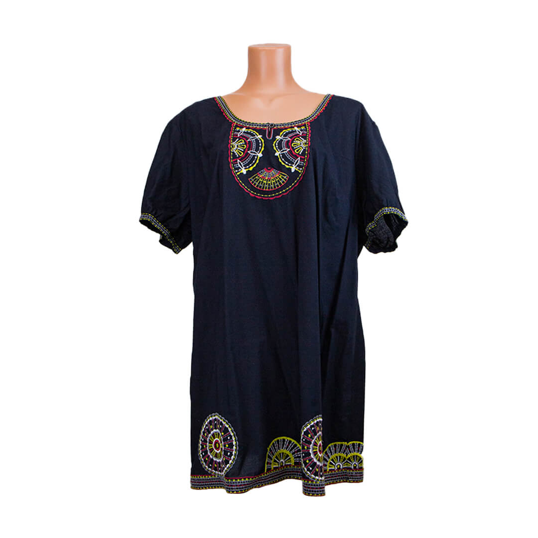 Блуза темно-синего цвета с вышивкой. Декоративная тесьма на рукавах, по низу и по горловине.